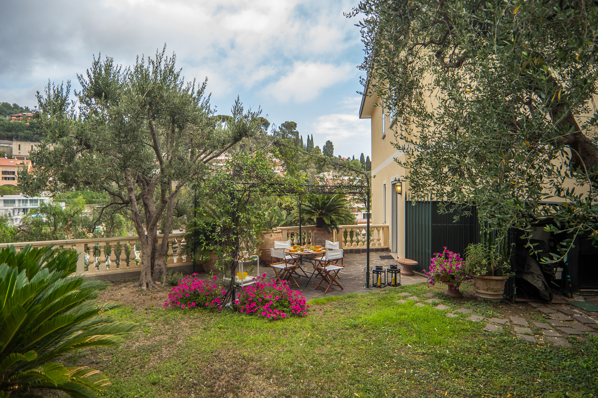 Alassio, vista mare con giardino privato.In zona semicentrale tranquilla, primissima fascia collinare, a circa 800 mt dal mare, zona tetti rossi, proponiamo in esclusiva caratteristico e luminoso appartamento con vista mare e splendido giardi...