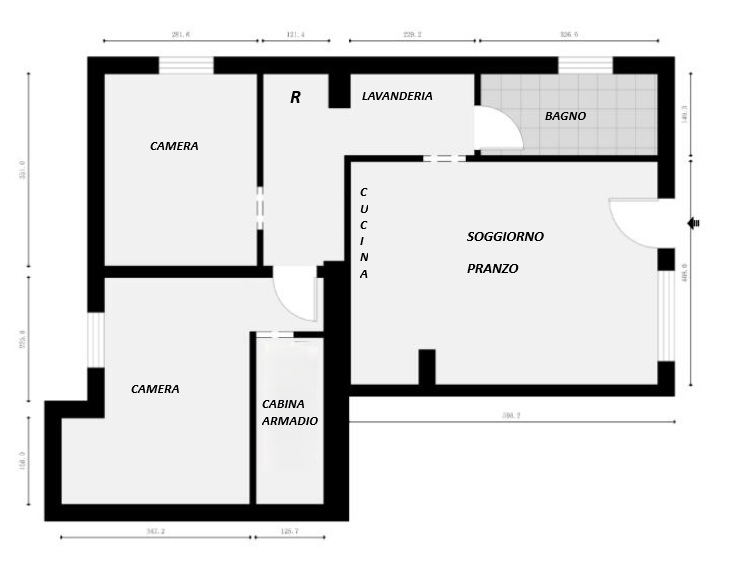Appartamento all'asta al piano secondo con ascensore, composto da: ingresso, soggiorno, cucina, ripostiglio, disimpegno, due camere, cabina armadio, bagno e veranda (legittimamente balcone) ed annessa cantina al piano interrato, oltre ad una autor...