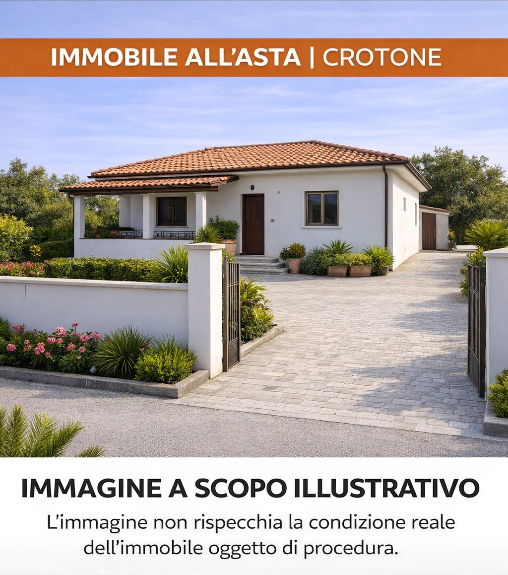 Immobile soggetto a esecuzione immobiliare Asta villa bifamiliare Crotone Proc. 15/2025 - Tribunale di Crotone Lotto unico L'unità fa parte di una villa bifamiliare distribuita su due livelli, con spazi interni regolari e accessori esterni di pe...
