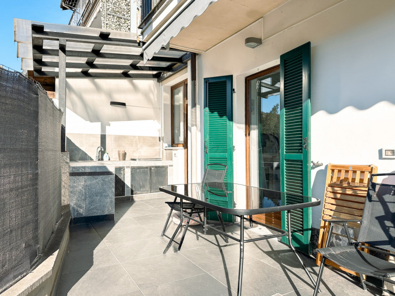 Questo appartamento duplex in vendita a Verbania gode di un cortile di proprietà, riservato e protetto, che invita a vivere ogni stagione all’aria aperta. Qui si trova una cucina esterna che sembra fatta apposta per i pranzi d’estate, per le grigl...