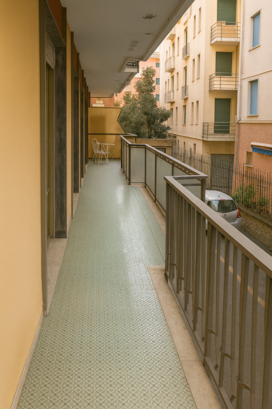 Affittasi con contratto transitorio senza residenza ampio trilocale al sesto e ultimo pianp a 700 metri dal mare e a pochi passi dal centro storico con negozi e bar. Libero dal 1 febbraio 2026. NO RESIDENZA No casa vacanze L'appartamento è compos...