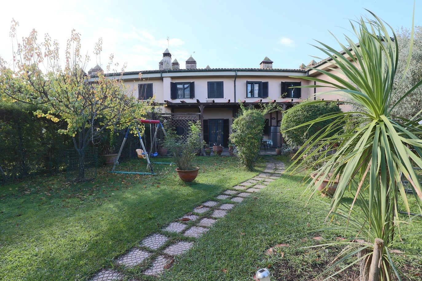 Marco Simone: all’interno del Golf Club , immerso nel verde e con vista campi da golf, disponiamo di una villa trilivelli con ampio giardino composta da: al piano terra - salone doppio, cucina abitabile, studiolo e bagno; portico e giardino...
