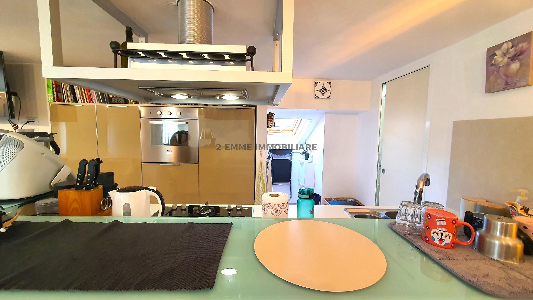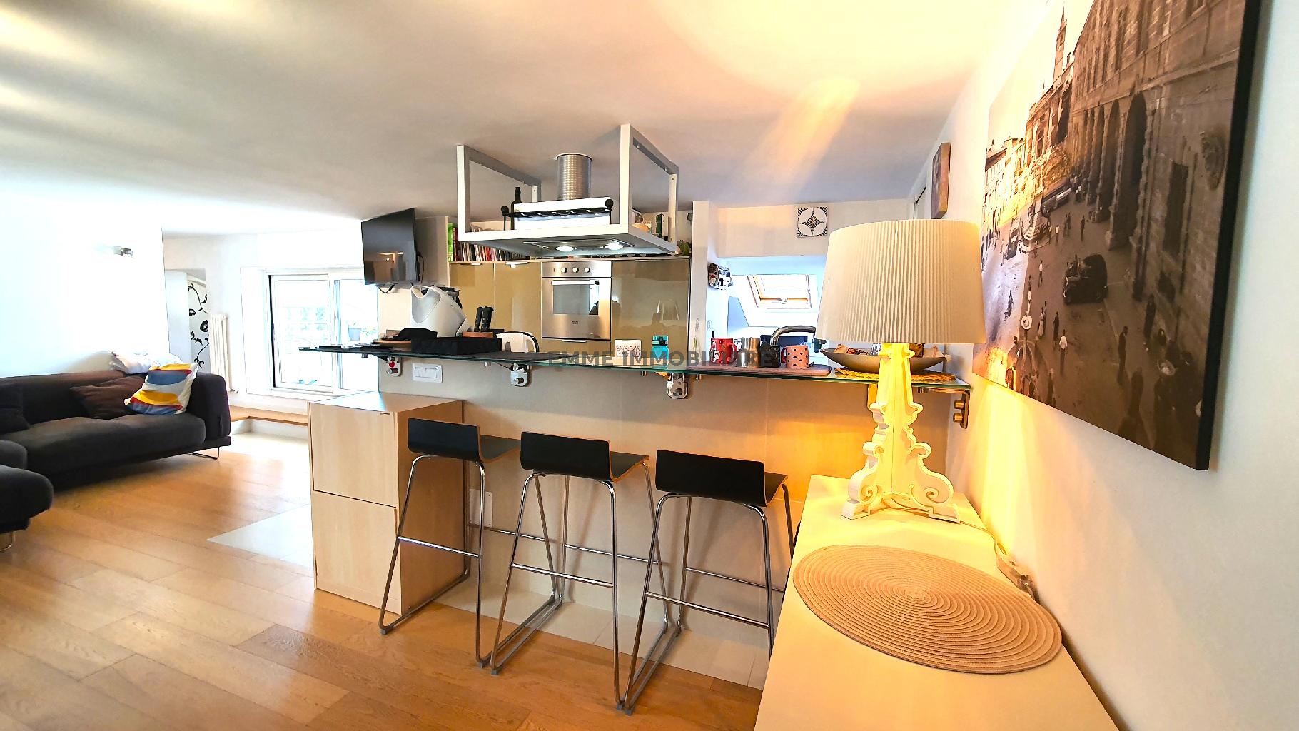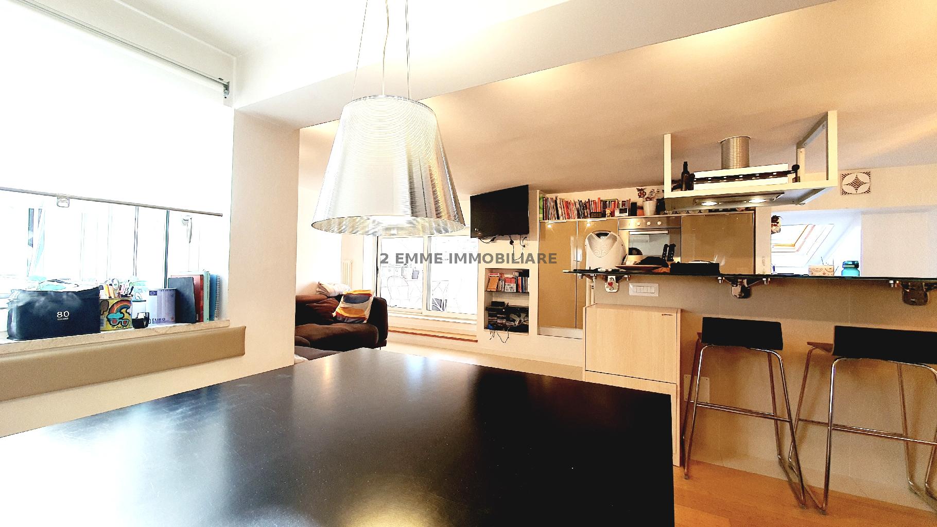 Mansarda perfettamente ristrutturata nel 2007 e dotata di tutti i confort. Posta al piano quinto senza ascensore è composta da ingresso su soggiorno con cucina a vista, zona pranzo e accesso al grazioso terrazzino di 4 mq con vista sulla città. Ba...