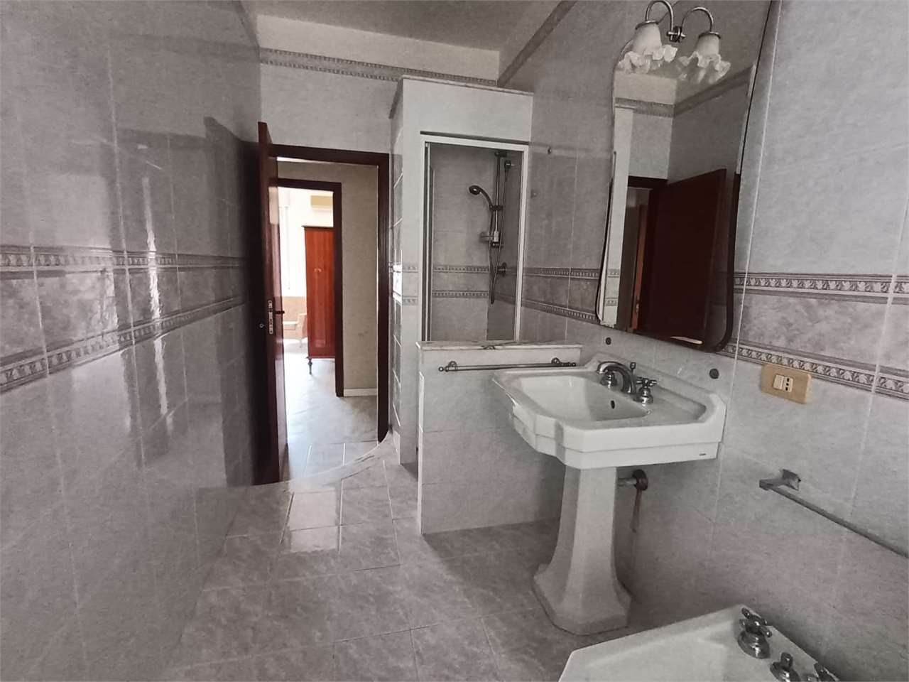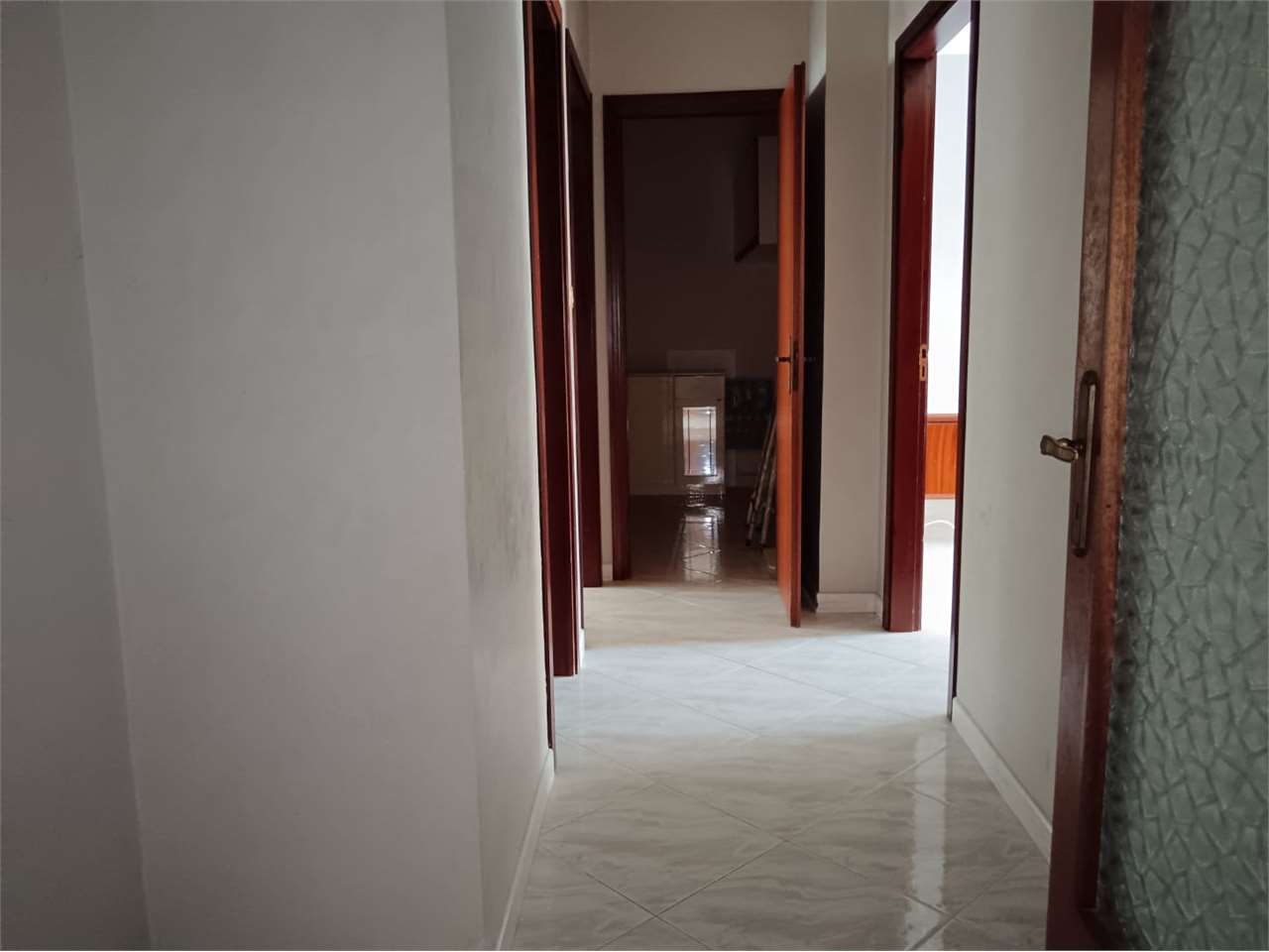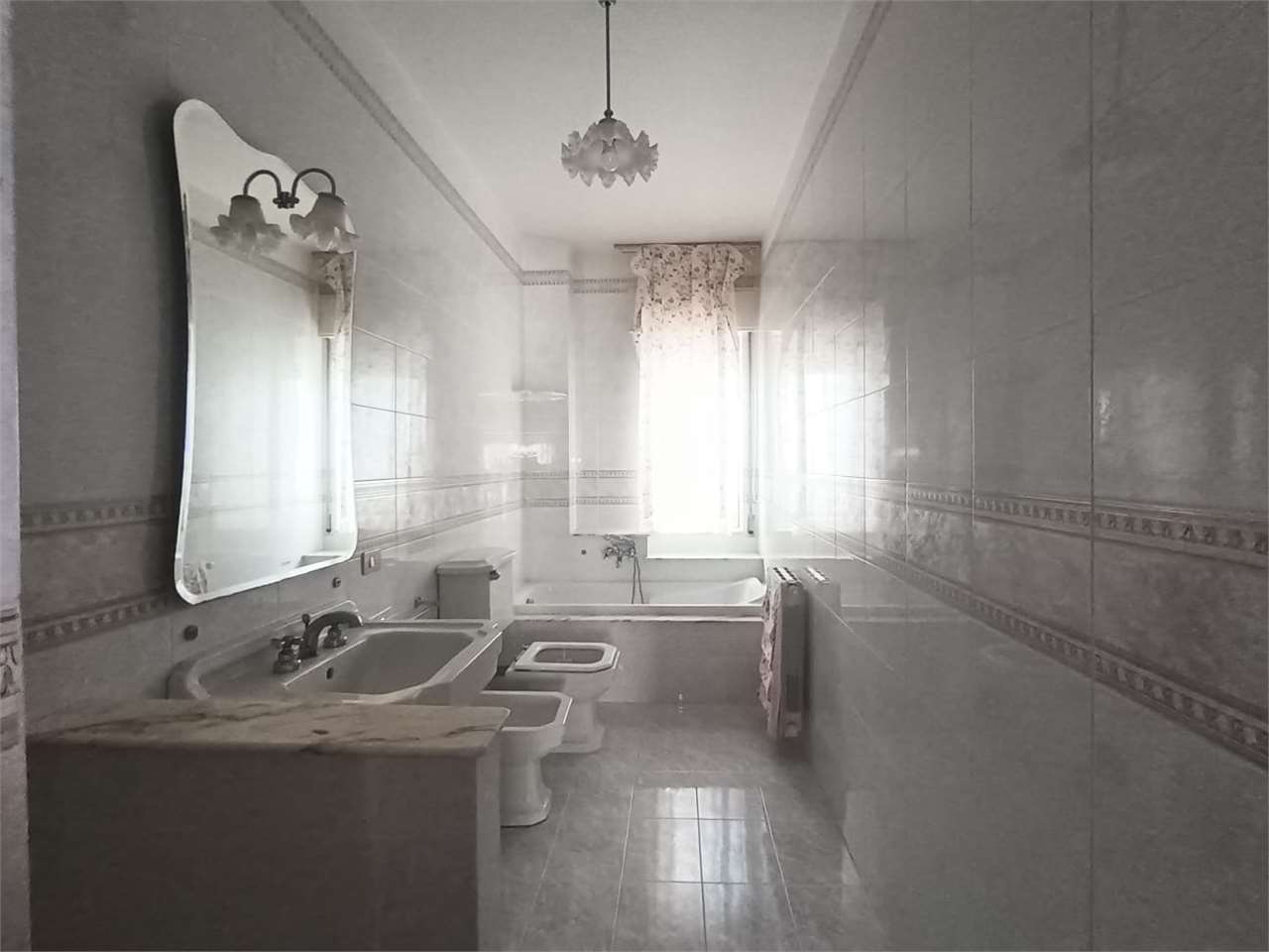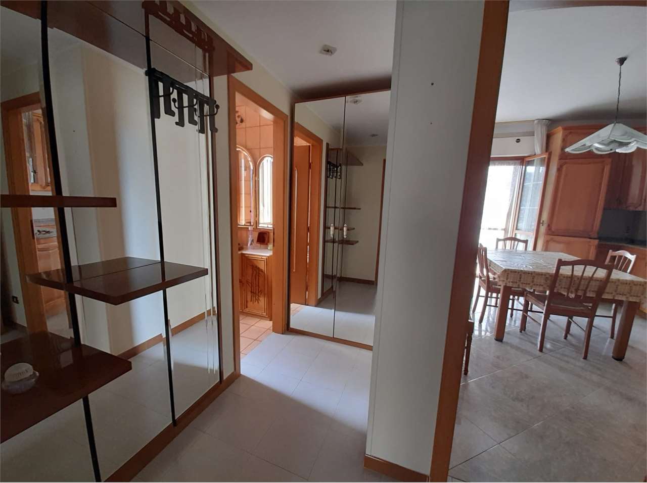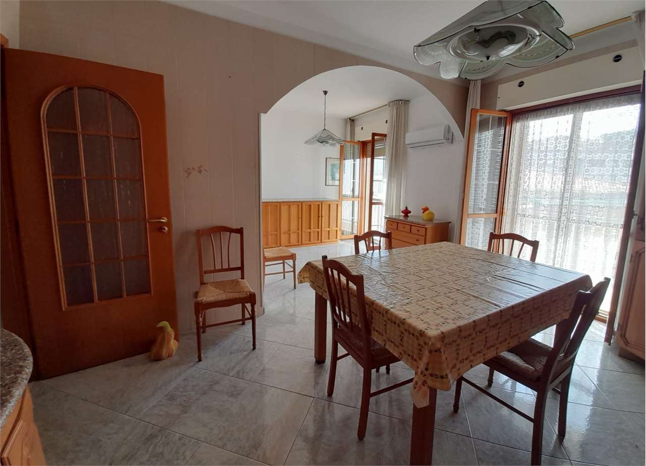 L'appartamento ha disimpegno d'ingresso, corridoio, salone doppio con due accessi al balcone, cucina abitabile con portafinestra sul secondo balcone, bagno con vasca e doccia e finestra, camera matrimoniale con accesso al balcone (comune al salone...