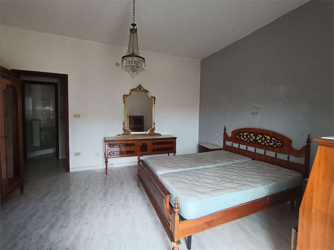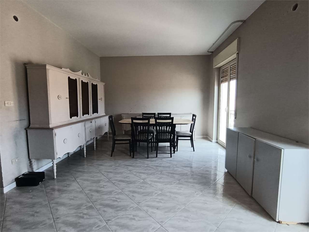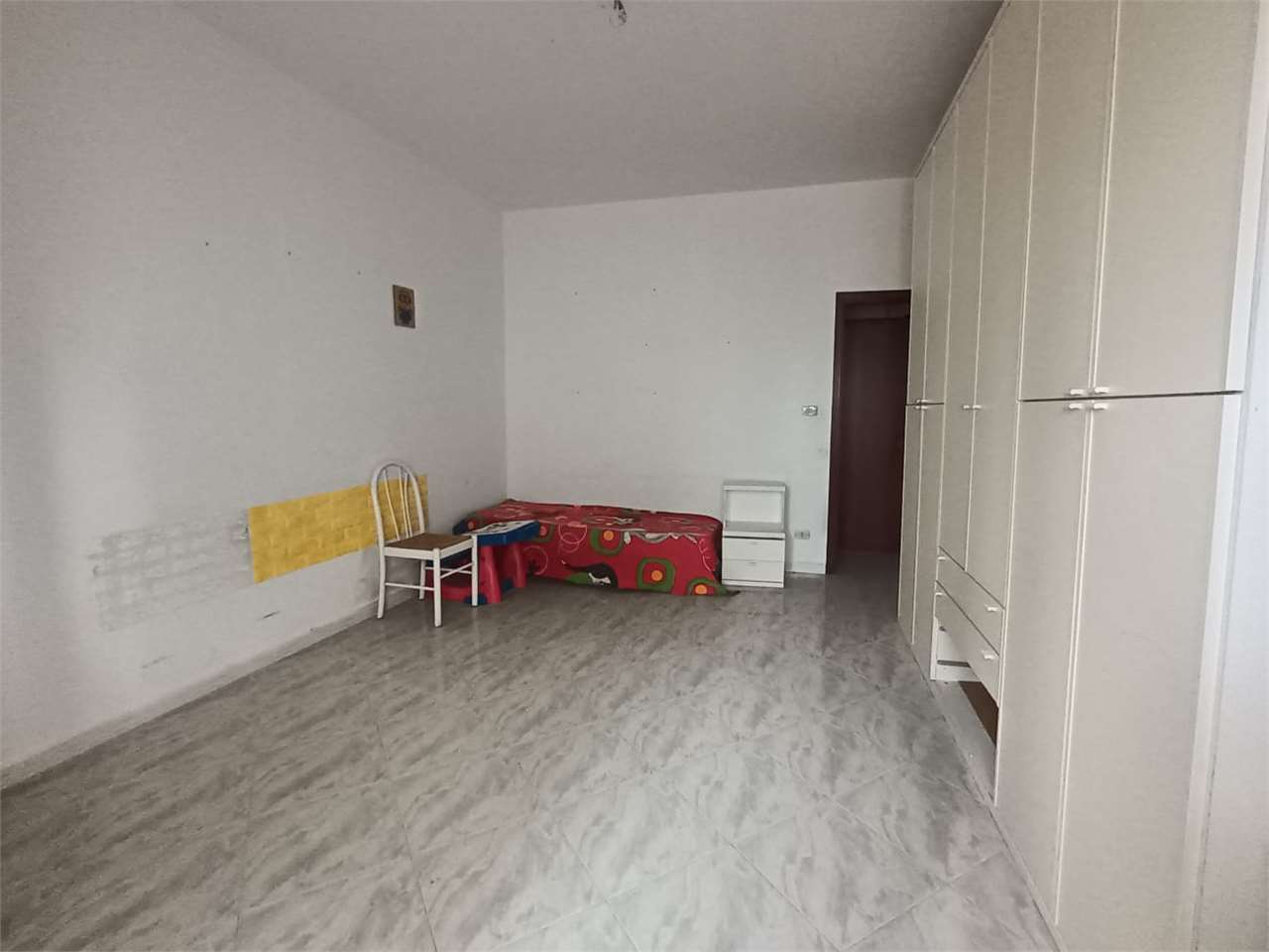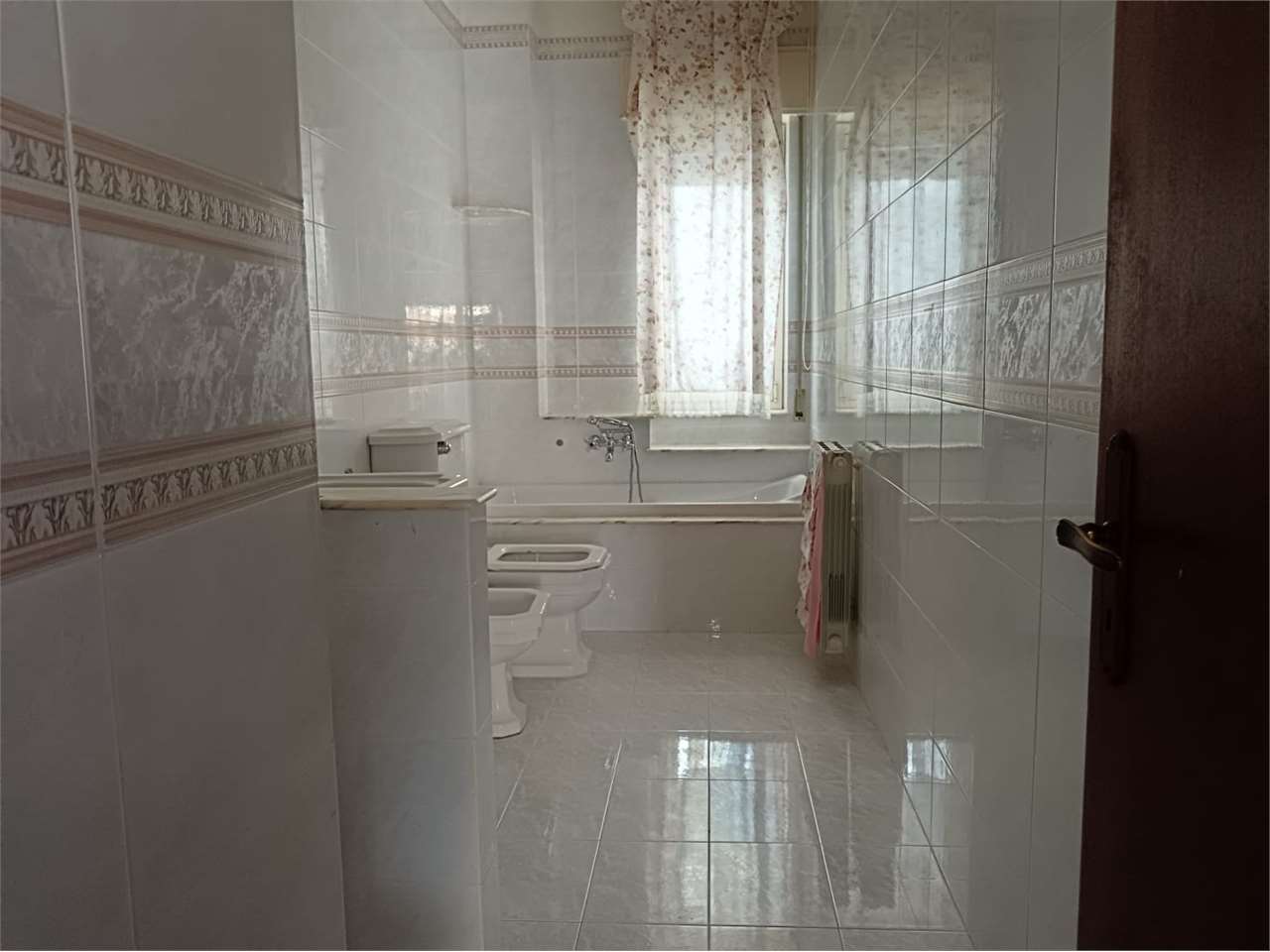 L'appartamento ha disimpegno d'ingresso, corridoio, salone doppio con due accessi al balcone, cucina abitabile con portafinestra sul secondo balcone, bagno con vasca e doccia e finestra, camera matrimoniale con accesso al balcone (comune al salone...