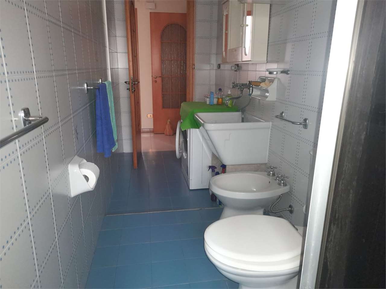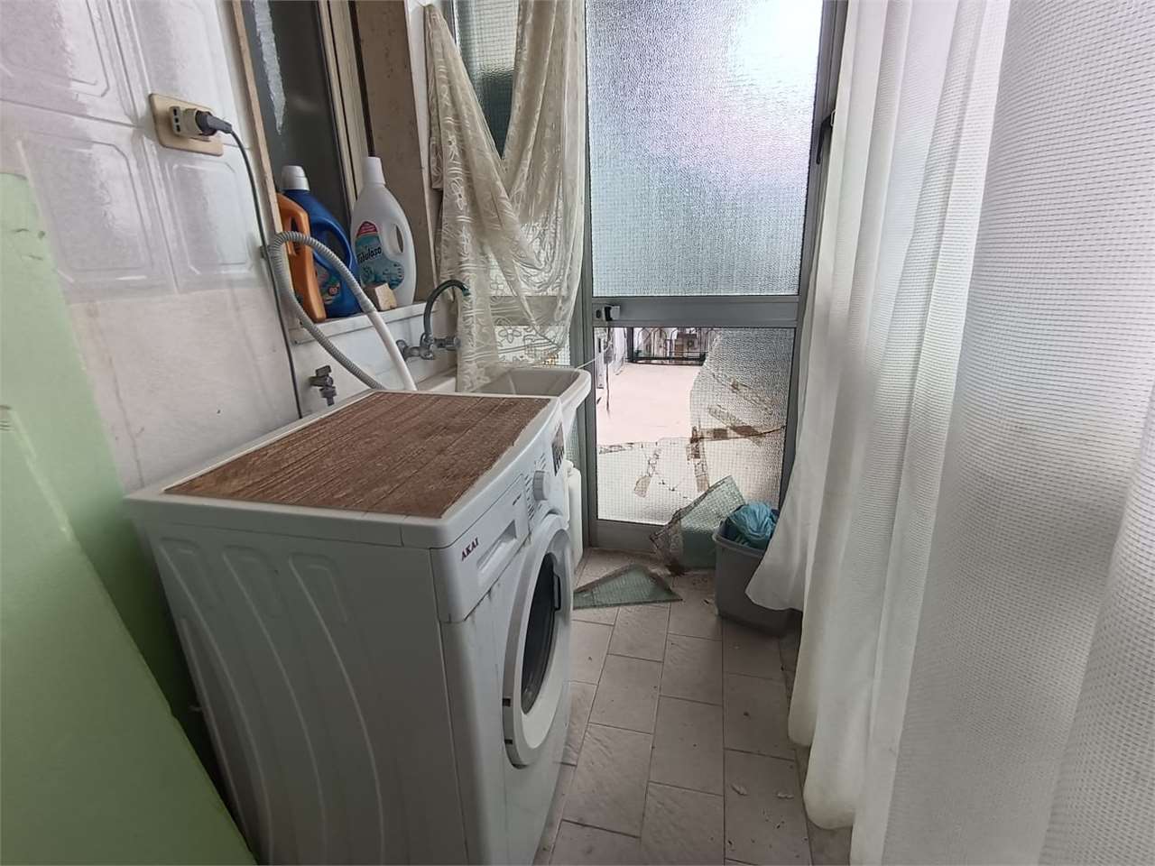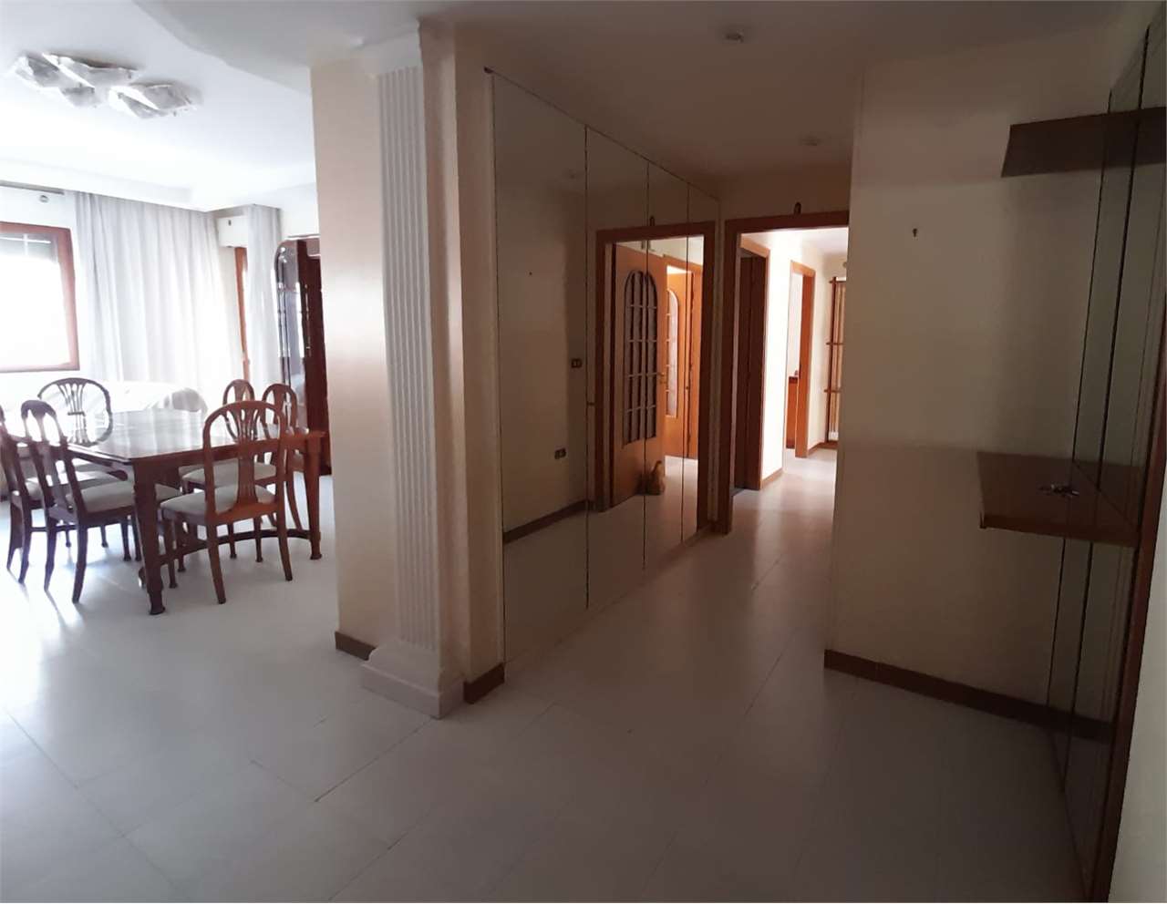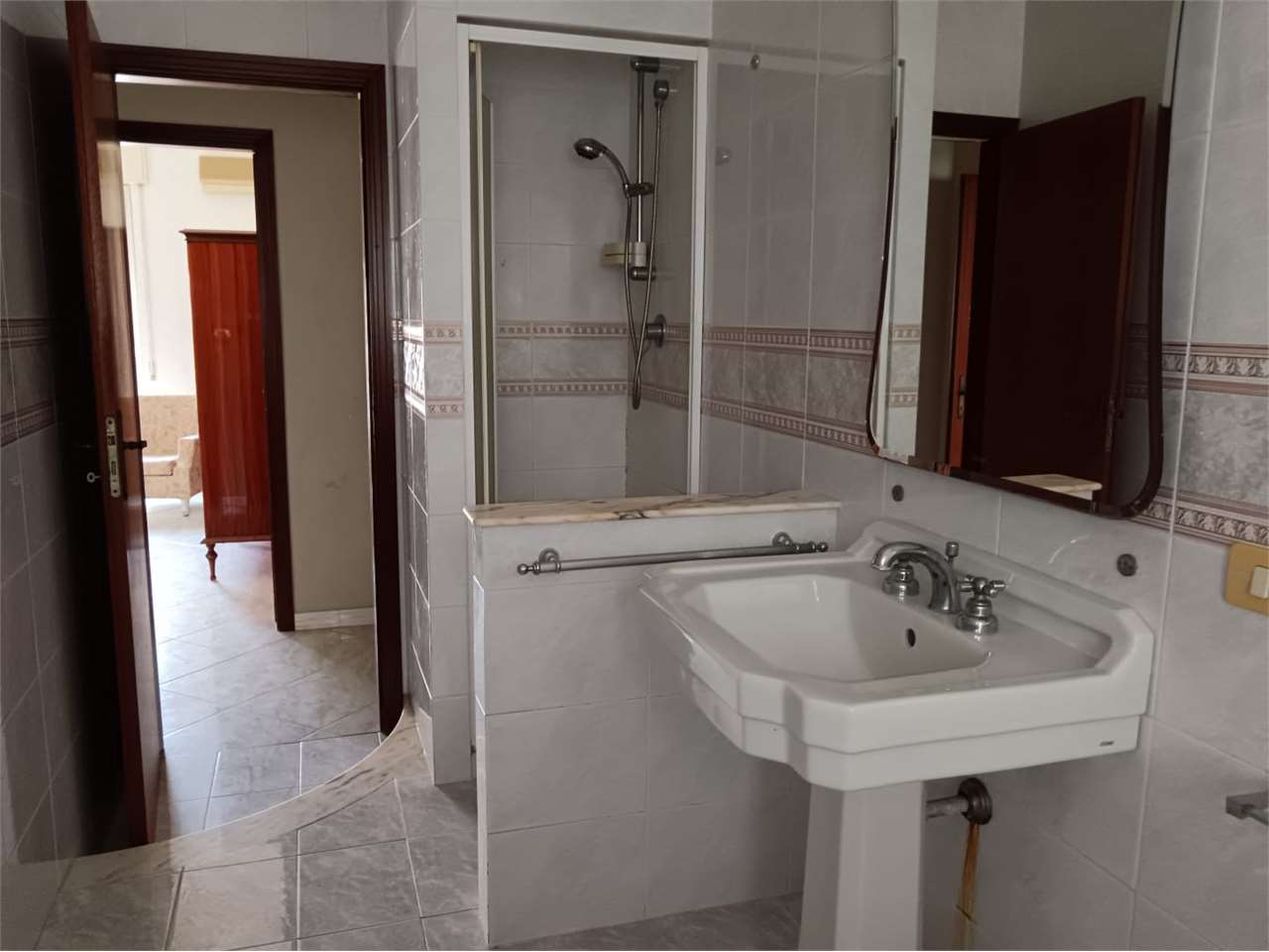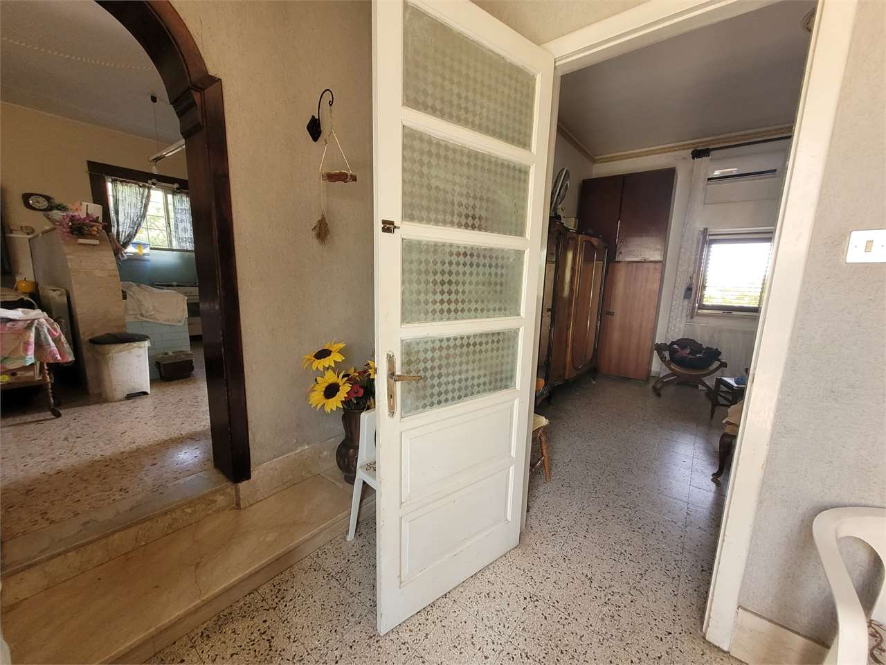 L'appartamento ha disimpegno d'ingresso, corridoio, salone doppio con due accessi al balcone, cucina abitabile con portafinestra sul secondo balcone, bagno con vasca e doccia e finestra, camera matrimoniale con accesso al balcone (comune al salone...