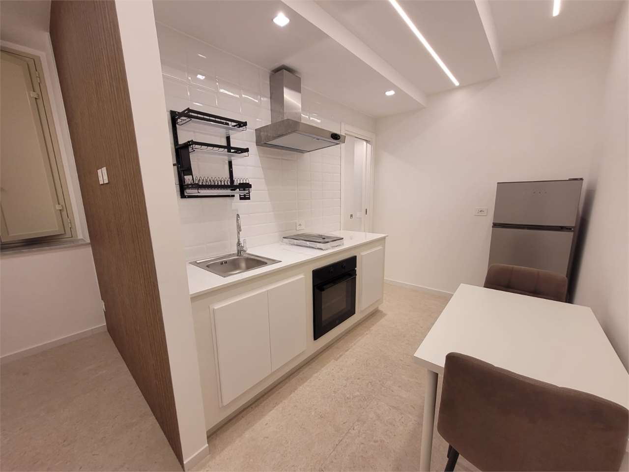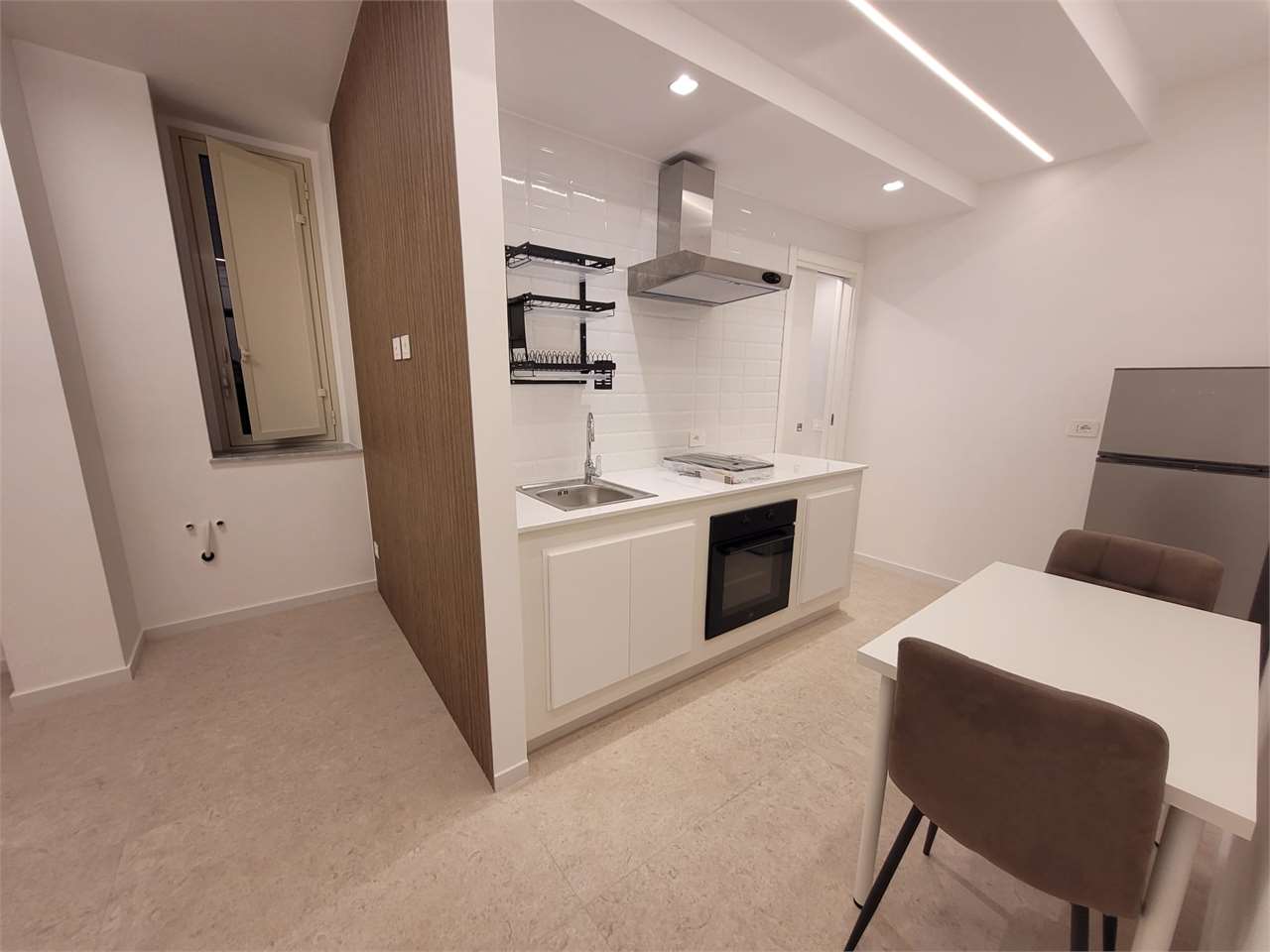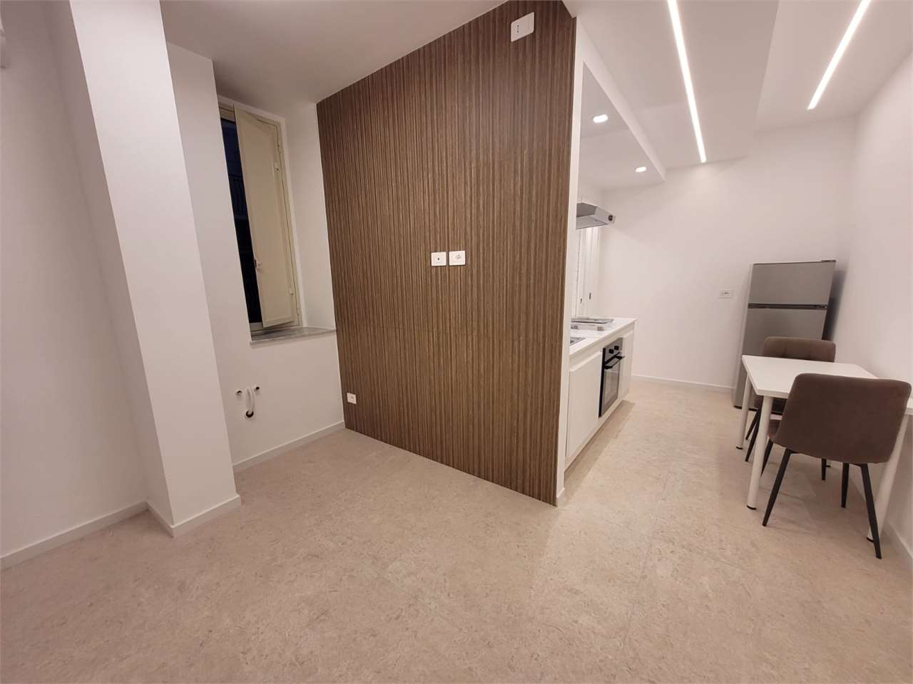 L'immobile si apre su un unico ambiente (separato da una mezza parete) composto dall'area cucina, dal funzionale bagno con doccia a vetri, dall'area notte con porta finestra, che apre verso il balcone a petto. CLASSE ENERGETICA: F