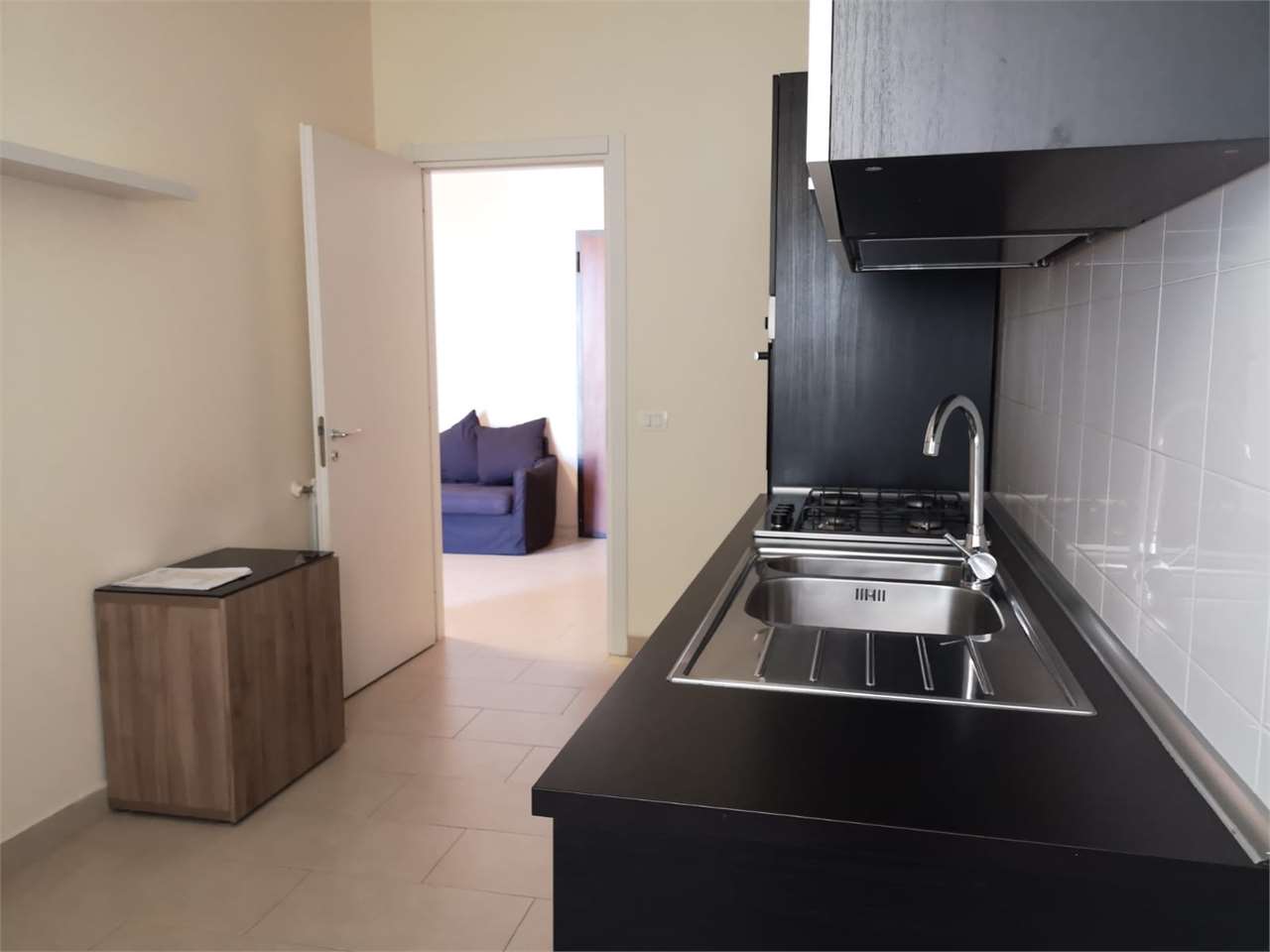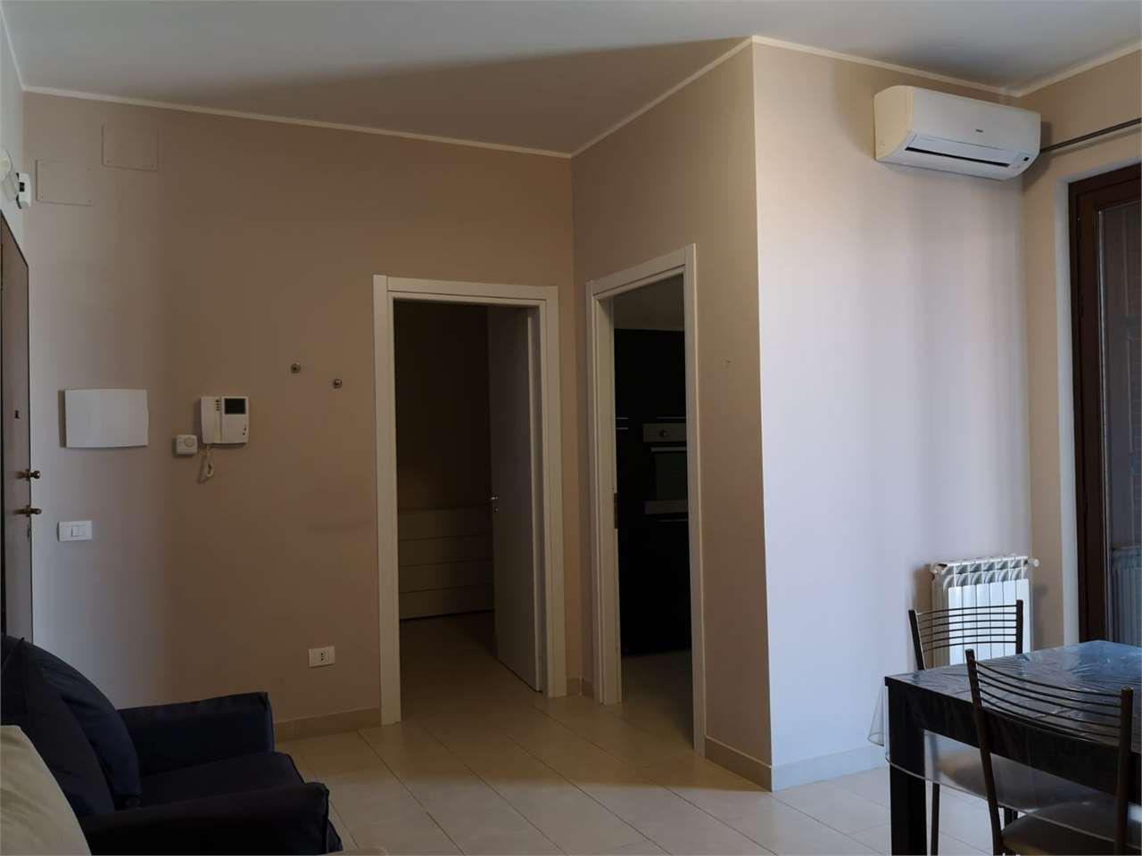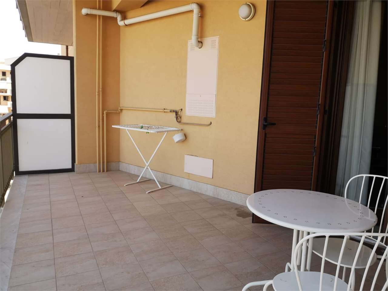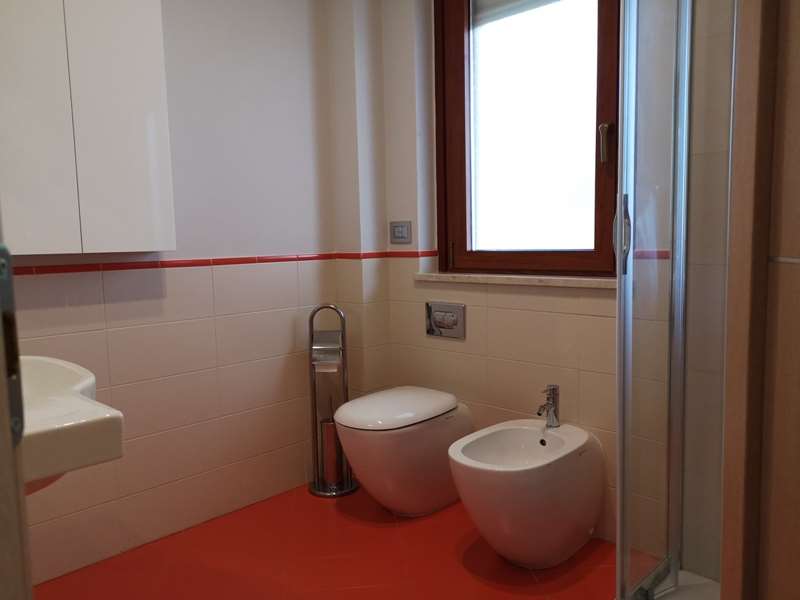Il trivani ha ingresso, moderna cucina soggiorno (con due accessi, uno dall'ingresso e una dal corridoio) con balcone esclusivo, corridoio, camera matrimoniale con balcone esclusivo, bagno con finestra e vasca e doccia, camera da letto singola con...