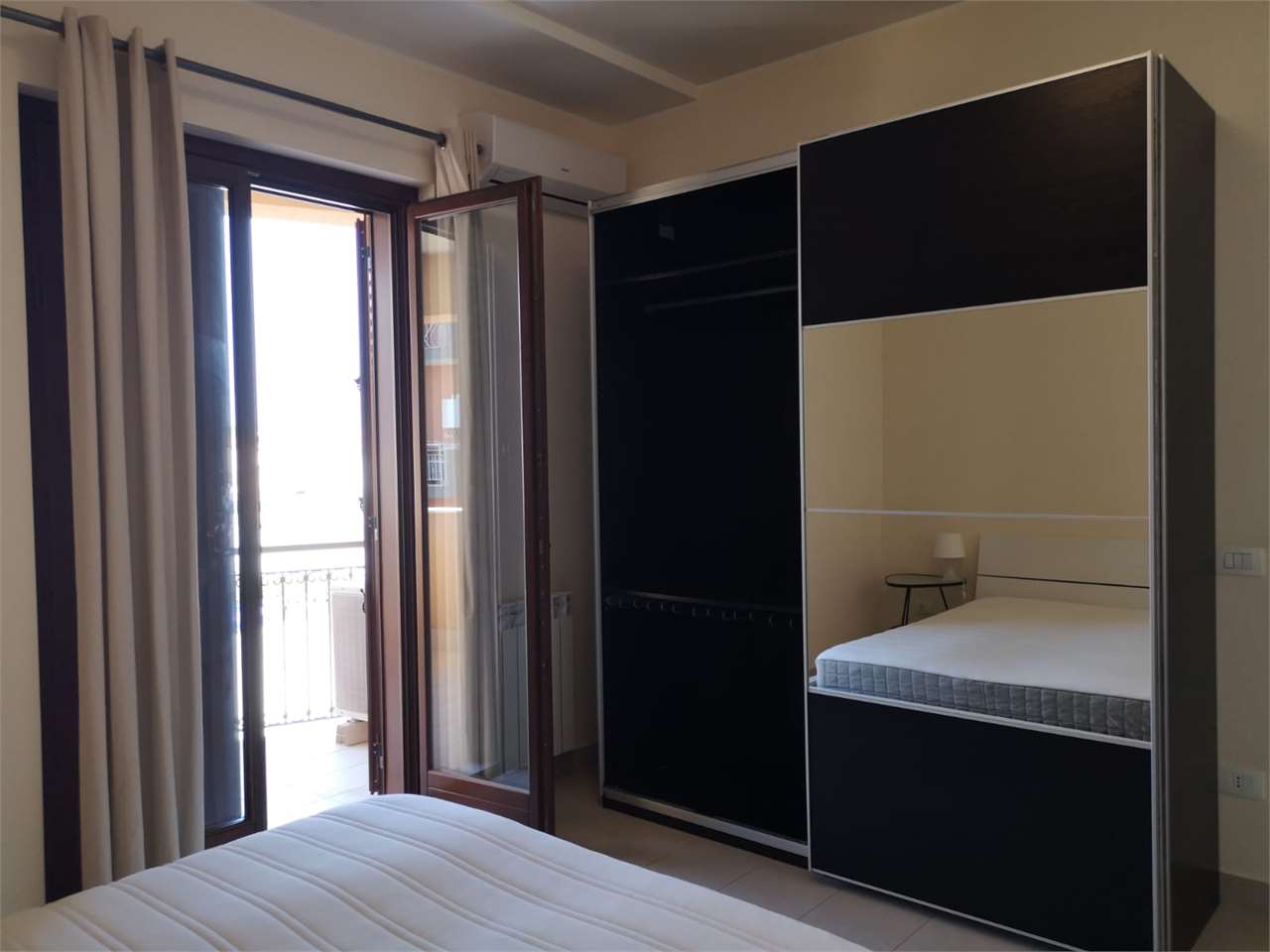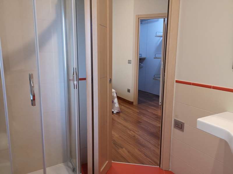 La casa, in buone condizioni, ha ingresso su corridoio, comoda cucina (con divano e finestra e accesso al balcone), grande camera matrimoniale (con finestra, accesso al balcone, cabina armadio e bagno personale con finestra e doccia), seconda came...