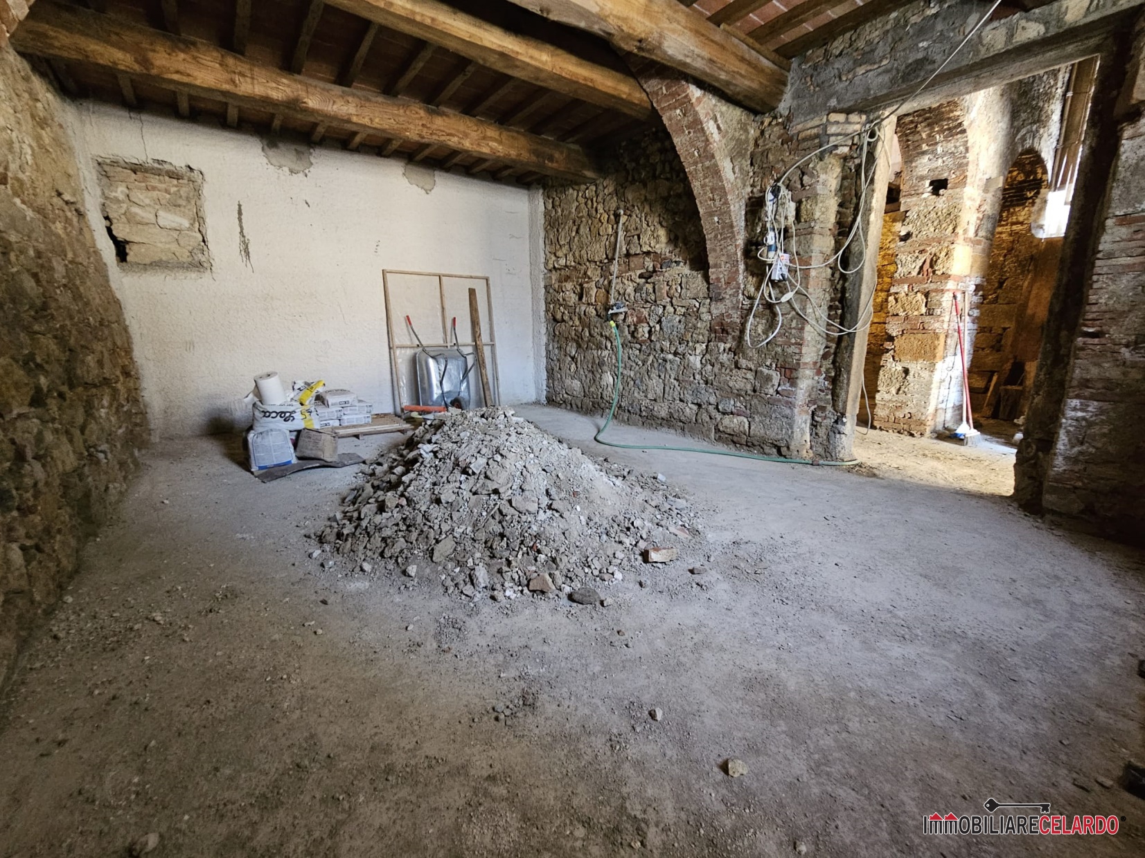 Vendesi nel Comune di Colle di val d'Elsa (SI), in zona di campagna, PORZIONE DI CASOLARE TERRATETTO da ristrutturare di mq 148 con ingresso indipendente e resede esclusivo. \n\nL'immobile è così composto:\nAl piano terra, ampio soggiorno/cucina, ...