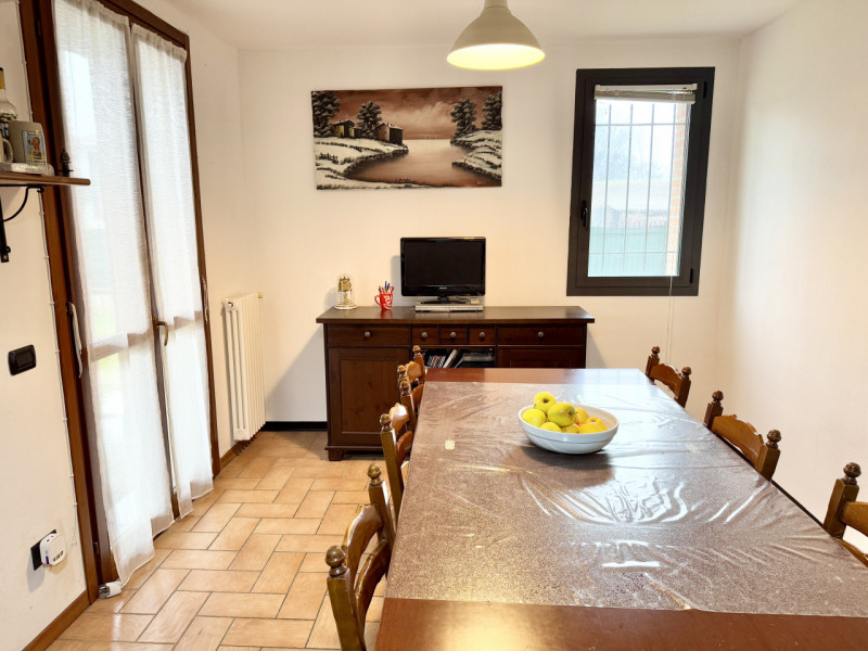 POLESINE ZIBELLO: In località Ongina casa indipendente disposta su un unico livello oltre accessori e composta da ingresso, soggiorno, cucina abitabile, due camere matrimoniali, bagno e balcone al primo piano; tre cantine, lavanderia e garage al p...