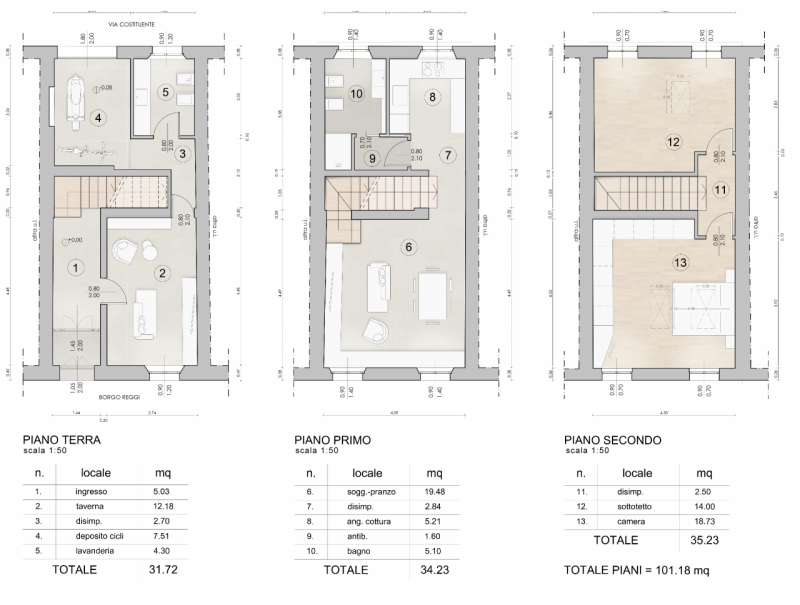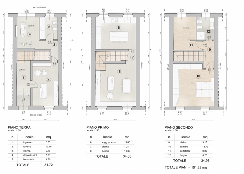 SAN SECONDO P.SE: In centro storico, porzione di casa completamente ristrutturata con ingresso indipendente, disposta su tre livelli, così composta: ingresso, taverna, bagno/lavanderia e garage per deposito cicli/motocicli al piano terra; cucina,...