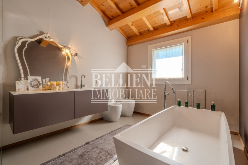 LAGHETTO: In uno dei quartieri più richiesti e residenziali della città, immerso nel verde e nella tranquillità, proponiamo una bifamiliare di generose dimensioni, recentemente ristrutturata con finiture moderne e di pregio. Al piano terra, l’abit...