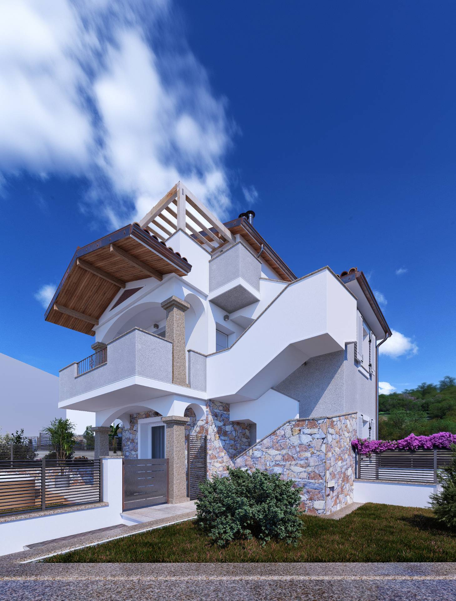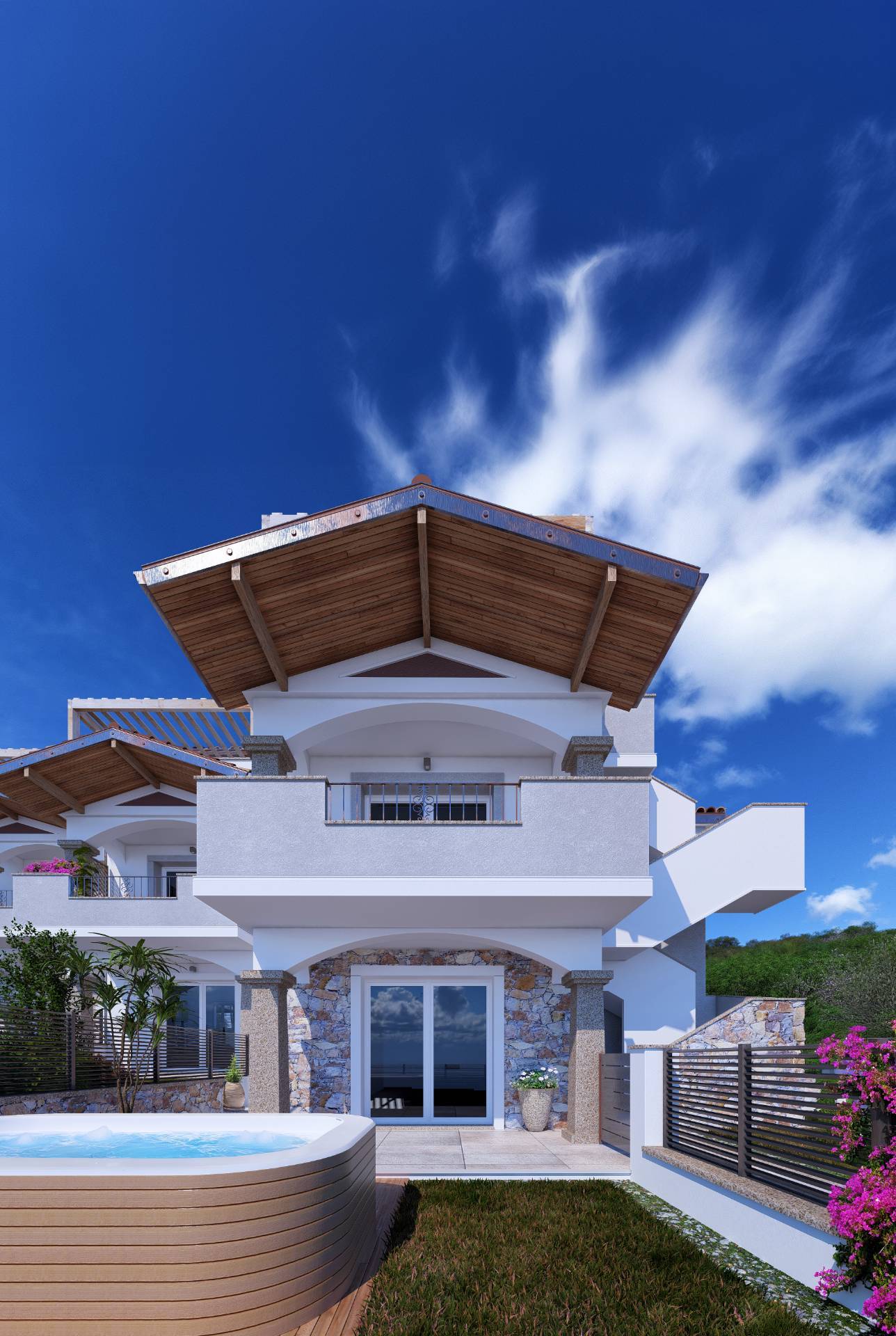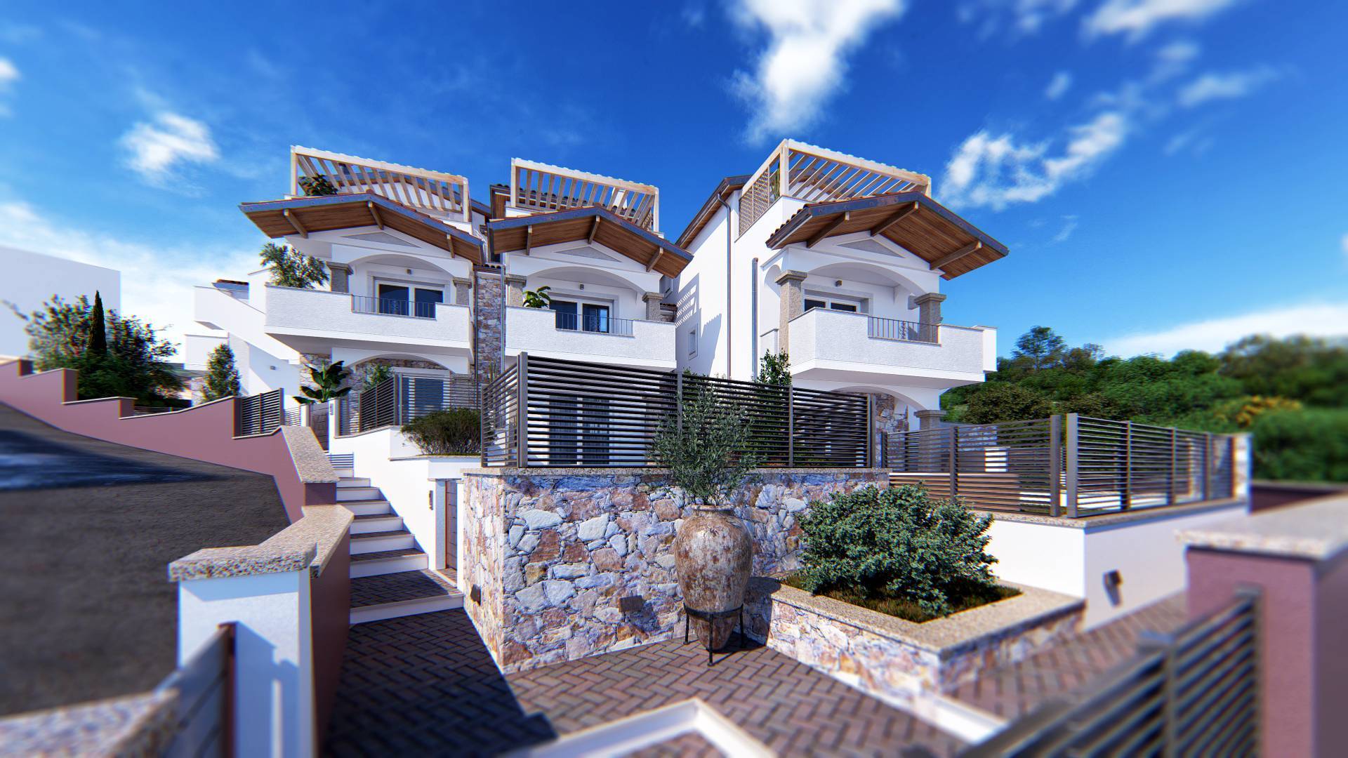 Il complesso residenziale, sorge in località Terra Bianca, comune di Castelsardo, posizione privilegiata con viste panoramiche e mozzafiato sulle colline e sul mare circostante che possono essere apprezzate da diverse angolazioni grazie alle terra...