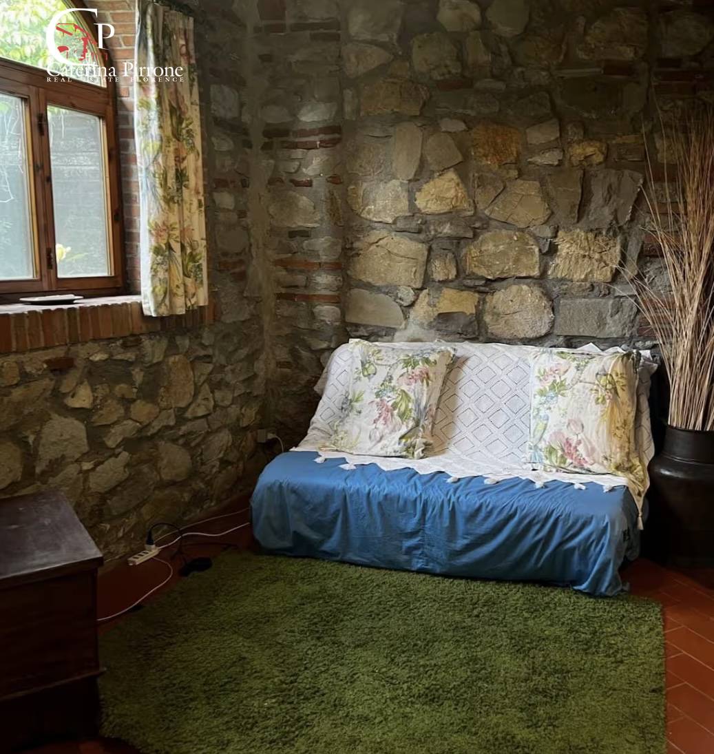 Fiesole, località Girone collinare, a 10 minuti da Firenze sud, affittasi villetta ex fienile in pietra indipendente con giardino recintato ad uso esclusivo, libero su 4 lati. Ingresso nella zona giorno con cucinotto e soggiorno con piacevoli affa...