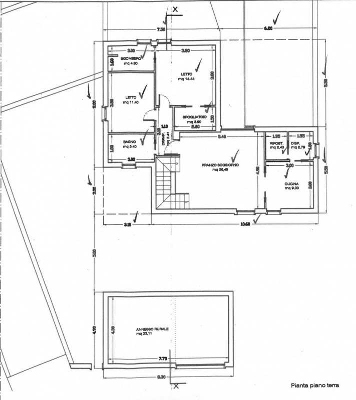 Rustico per civile abitazione composto da un piano terra di 108 mq con mansarda abitabile, un piano seminterrato ampio e luminoso adibito a zona living e rusticheria o garage, con a fianco locale annesso rurale abitabile, il tutto circondato da am...