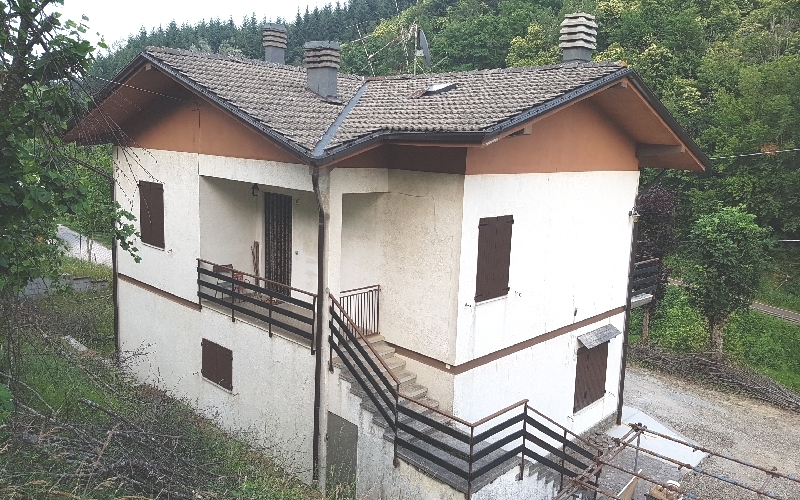 CASTEL D'AIANO (CD/V238) vicinanze capoluogo, villa indipendente composta da due appartamenti, P.Terra; cucina, soggiorno, due camere e bagno. Garage. P.Primo, soggiorno con camino e balcone, cucinotto, tre camere, bagno e balcone. Giardino albera...