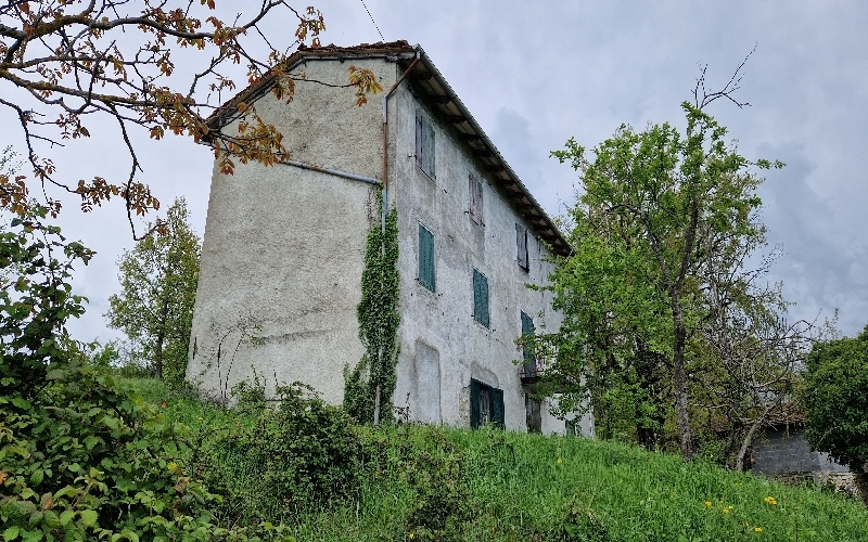 MONTESE (MT/R24) podere di oltre quattro ettari di terreno, seminativo, bosco e castagneto con fabbricati in sasso disposti in caratteristica corte a ferro di cavallo, abitazione su due livelli con ingresso e vano scala, soggiorno, cucina, tre cam...