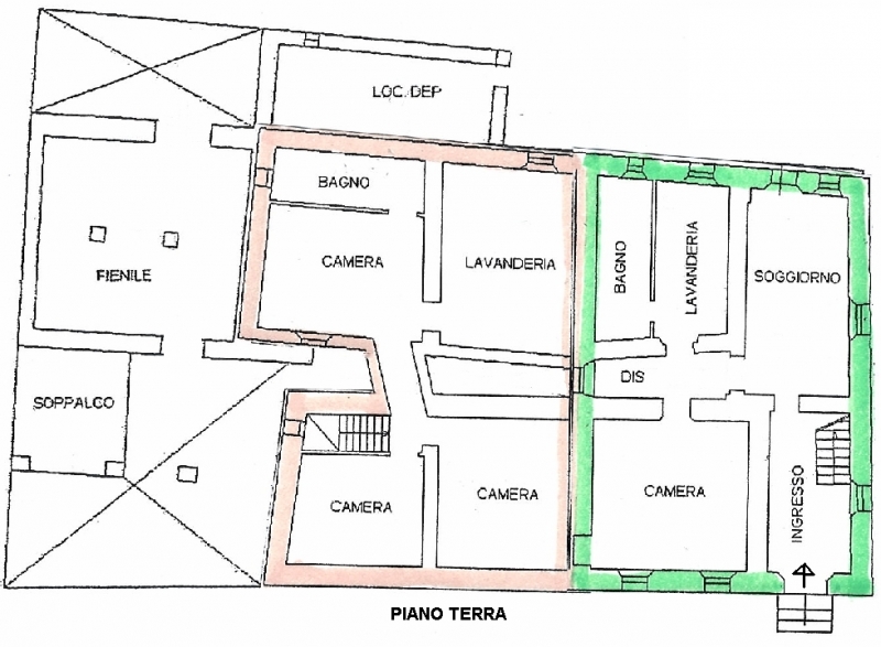 ZOCCA - vicinanze capoluogo (ZO/R516) rustici in sasso di elevate dimensioni, da ristrutturare, abitazione su tre livelli con due unità abitative ed accessori, ex stalla/fienile con solaio a volte in mattoni vecchi, altro fabbricato ad uso essicca...