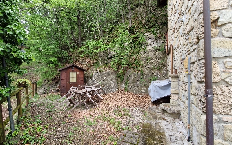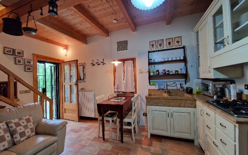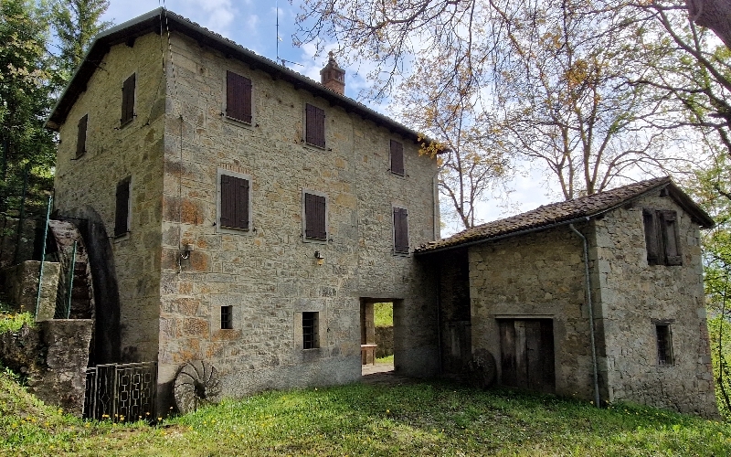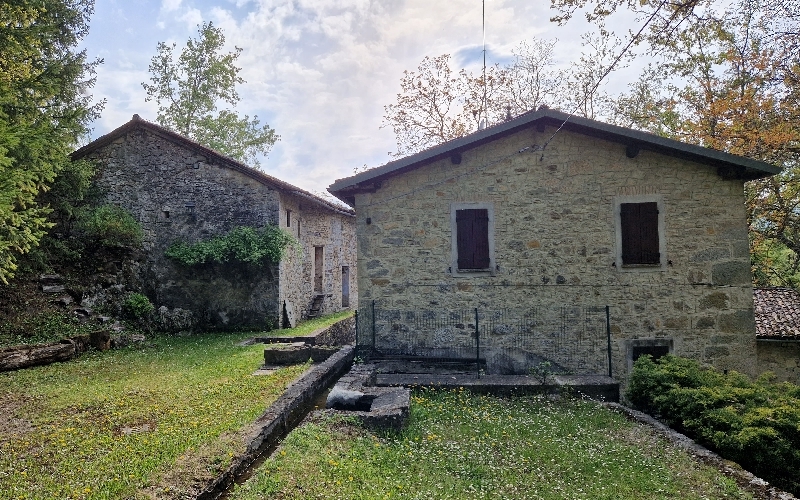 ZOCCA - vicinanze (ZO/R502) antico mulino ristrutturato con ruota ad acqua; vari fabbricati in sasso, abitazione con due appartamenti ai piani terra e primo entrambi con soggiorno con angolo cottura e camino, disimpegno, due camere, bagno, al P. s...