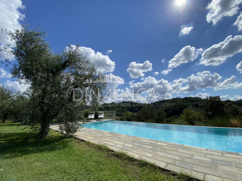 In una bella posizione panoramica, non lontano da un bel paese toscano, si trova questa proprietà composta da due casali ricostruiti con panoramica piscina a sfioro all'interno di un antico uliveto. Gli edifici sono stati ricostruiti in chiave mo...