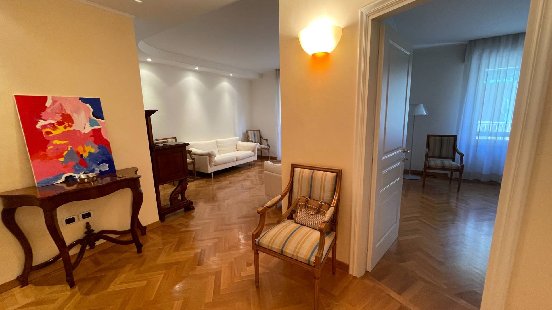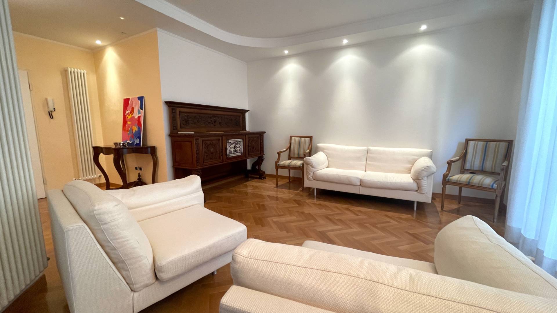 Appartamento al Piano Primo con ascensore, delle dimensioni di 120 mq. circa, composto da ingresso, soggiorno doppio (eventuale 3a camera da letto), cucina abitabile con annessa dispensa, 2 camere da letto matrimoniali, 2 bagni (di cui uno en-suit...