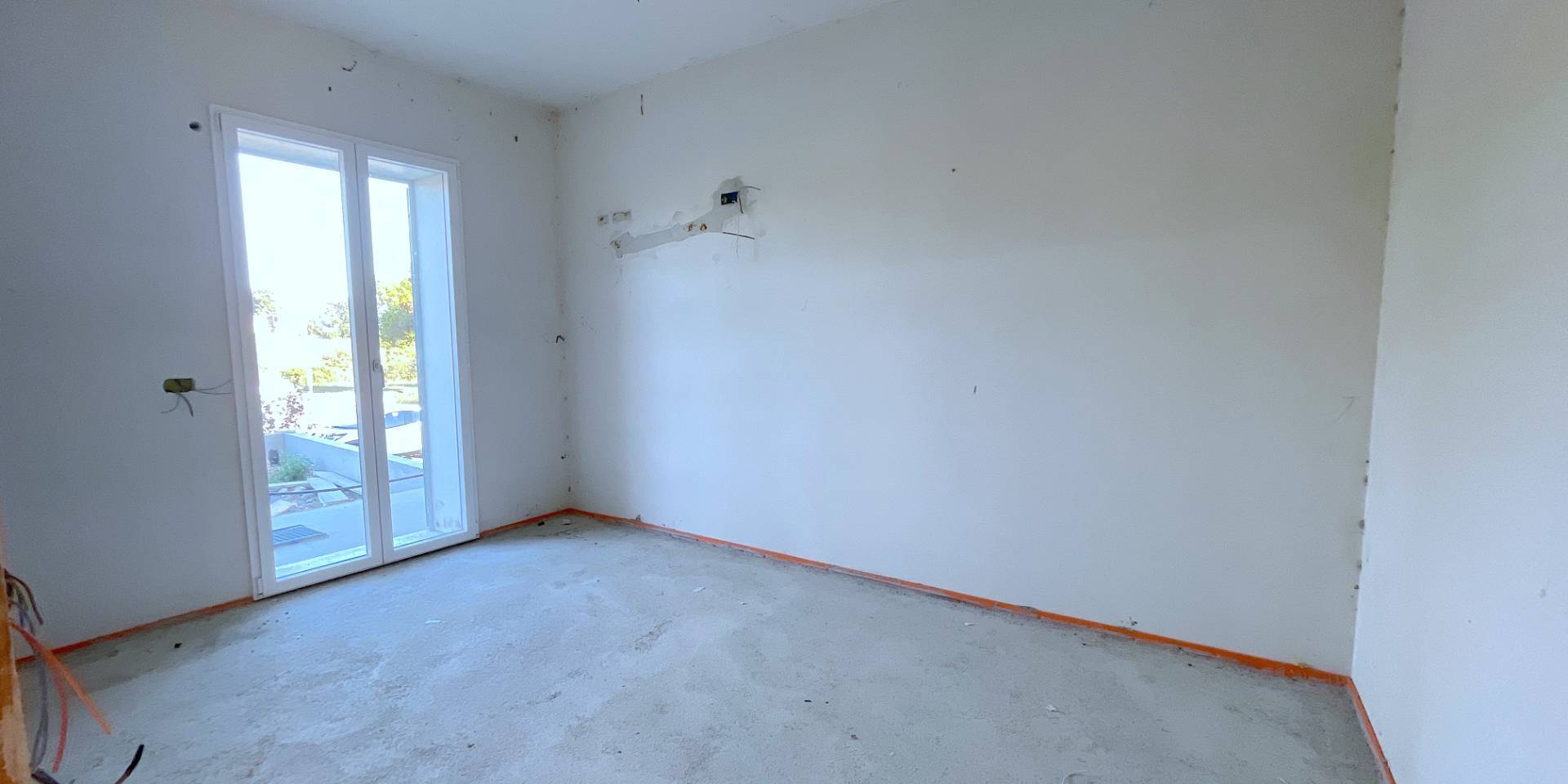 Appartamento al piano terra con ingresso indipendente, della superficie di circa 61,5 mq, composto da soggiorno con angolo cottura, due camere da letto (una matrimoniale e una doppia) e un bagno con box doccia. Labitazione è impreziosita da un gi...