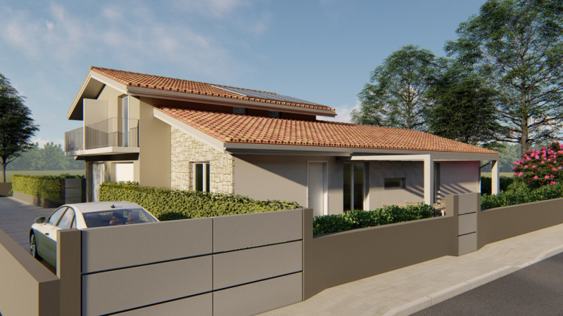 In nuova e tranquilla zona residenziale, prossima realizzazione di due porzioni di villette bifamiliari (da parte di impresa storica del luogo), disposte prevalentemente al piano terra, con: Zona giorno open space, molto luminosa grazie alle ampi...