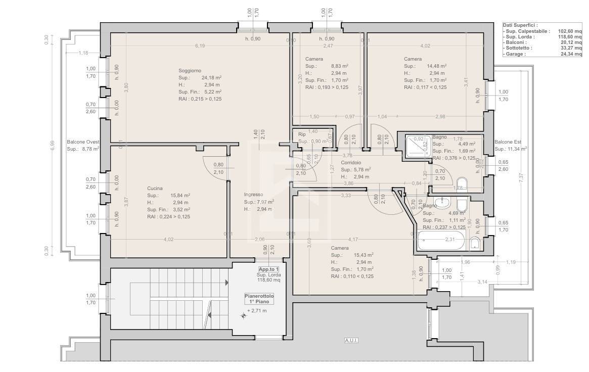 Rif: EP-065-14 Appartamento n°19: appartamento duplex con accesso al primo piano, dove troviamo soggiorno con angolo cottura, camera da letto e bagno oltre a terrazzino coperto di 17 mq; al piano secondo due camere, due bagni con terrazzo di 13 mq...