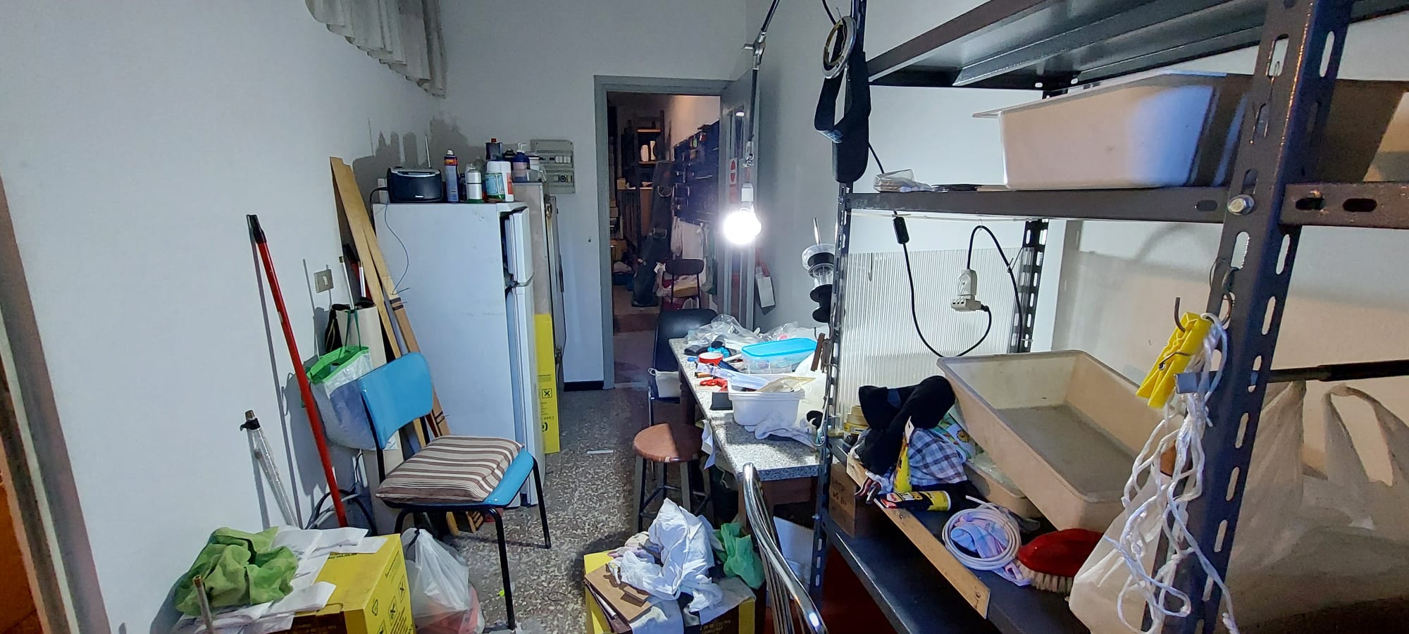 Al piano terreno (primo f.t.) locale con fronte ingresso a vetrina sulla via Foligno, composto da un vano con retro, area deposito con lavabo, servizio igienico esterno in condivisione, uscita sul retrostante cortile, oltre a cantina al piano inte...