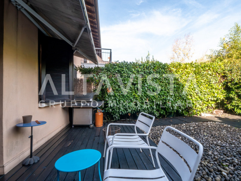 Altavista propone in vendita una porzione centrale di casa terra-cielo a Esenta, frazione di Lonato del Garda. L’immobile si apre su un grazioso giardino privato che conduce alla porta principale al piano terra. Qui troviamo un'accogliente zona g...