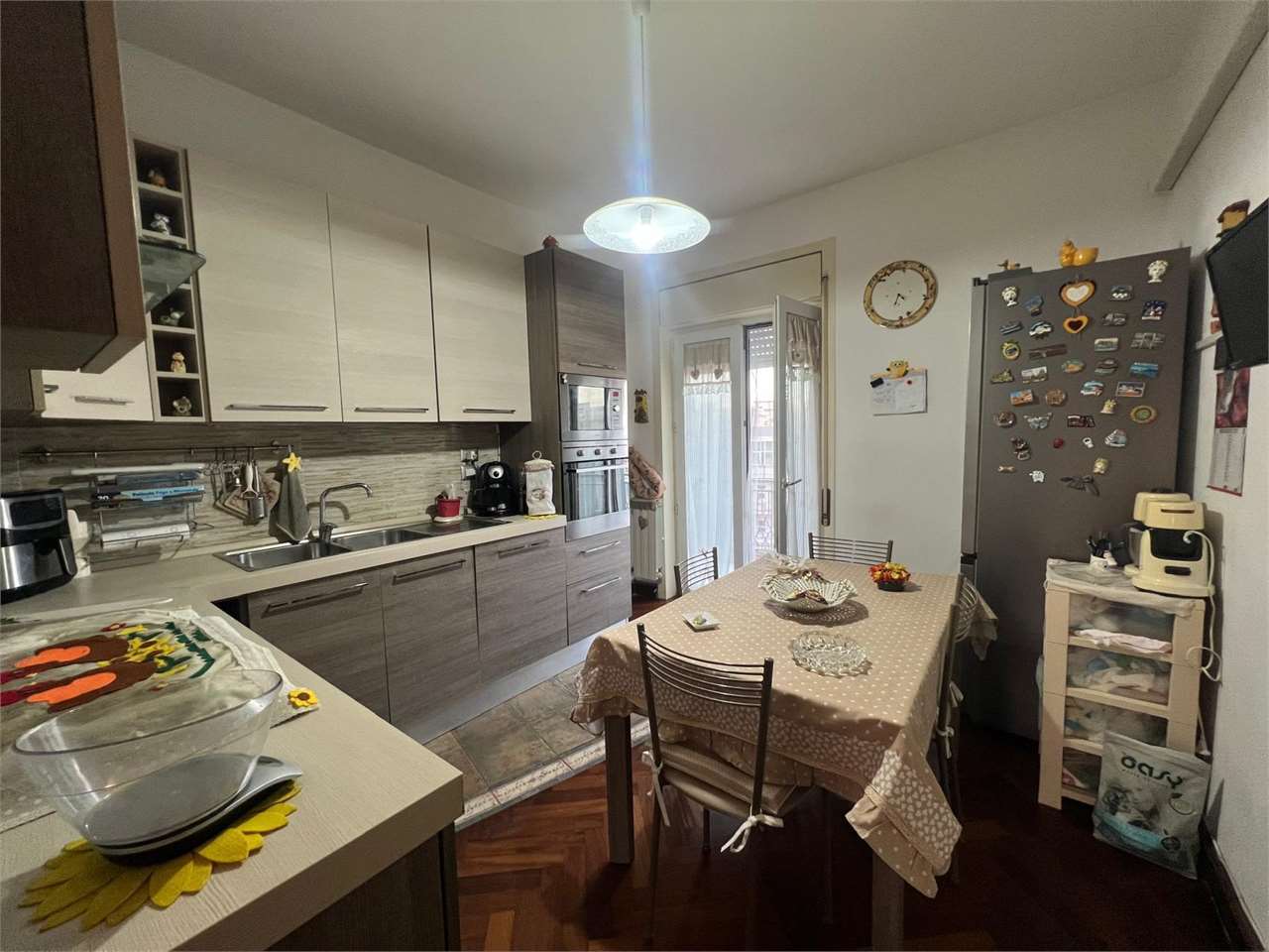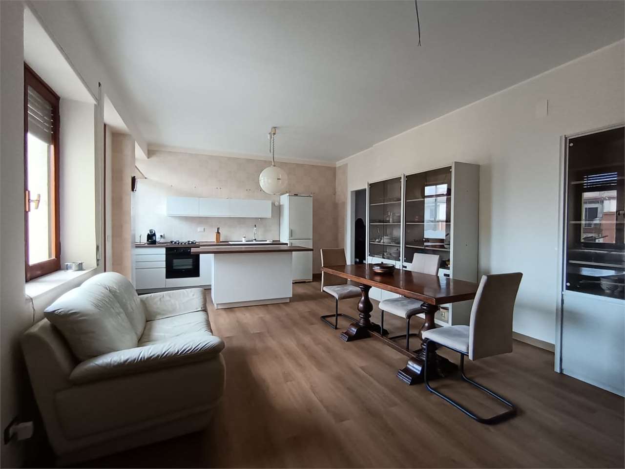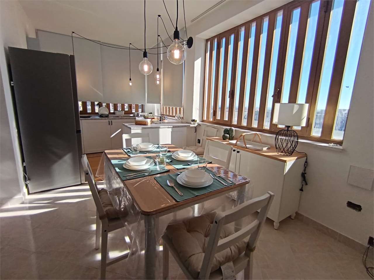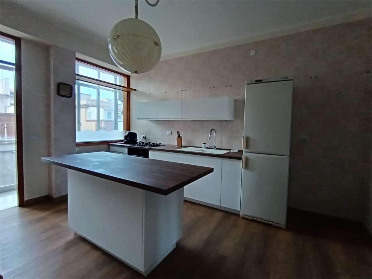 la casa ha ingresso su un grande e signorile salone aperto e con balcone esclusivo, cucina abitabile con balcone esclusivo e doppio servizio (con wc, pilozza e angolo lavatrice), disimpegno, bagno con doccia e finestra, camera da letto matrimonial...