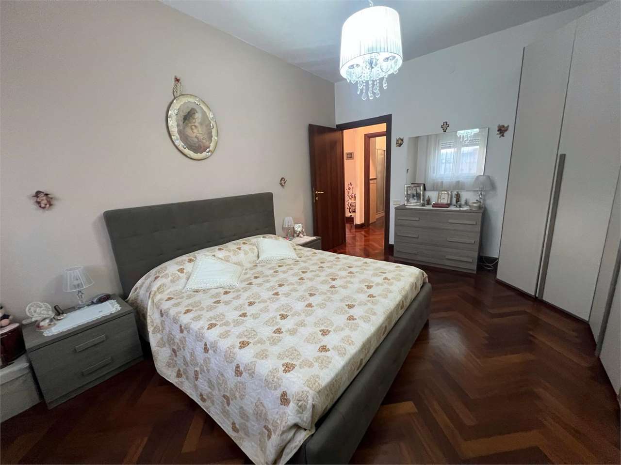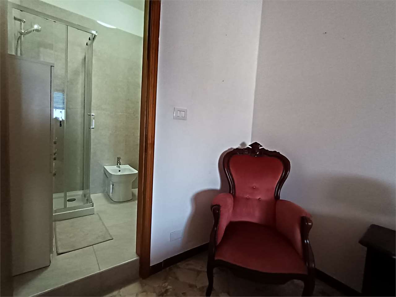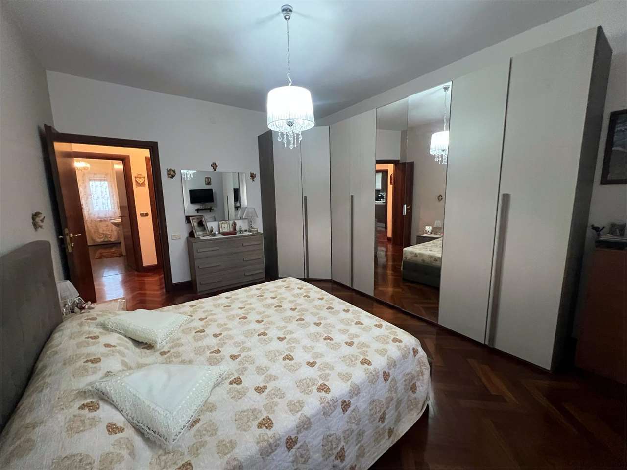 la casa ha ingresso su un grande e signorile salone aperto e con balcone esclusivo, cucina abitabile con balcone esclusivo e doppio servizio (con wc, pilozza e angolo lavatrice), disimpegno, bagno con doccia e finestra, camera da letto matrimonial...