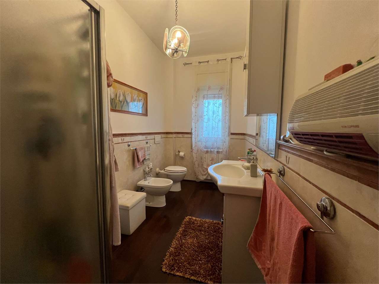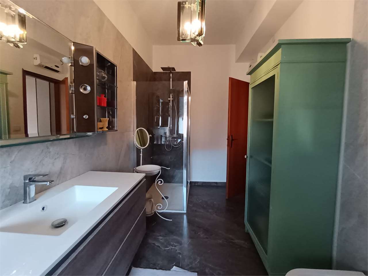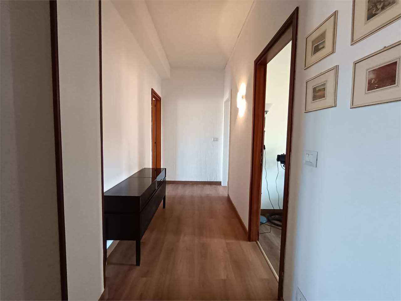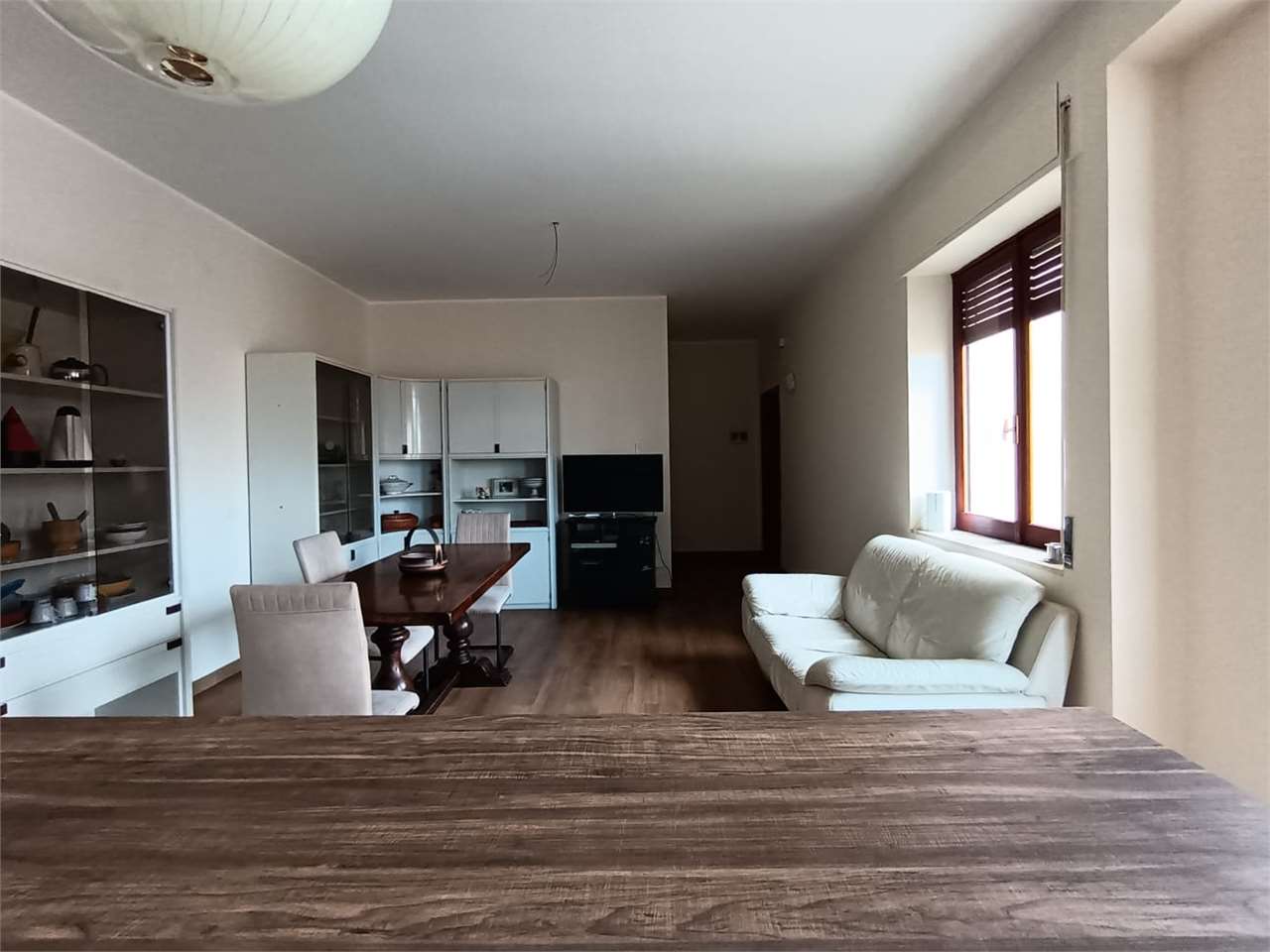 la casa ha ingresso su un grande e signorile salone aperto e con balcone esclusivo, cucina abitabile con balcone esclusivo e doppio servizio (con wc, pilozza e angolo lavatrice), disimpegno, bagno con doccia e finestra, camera da letto matrimonial...