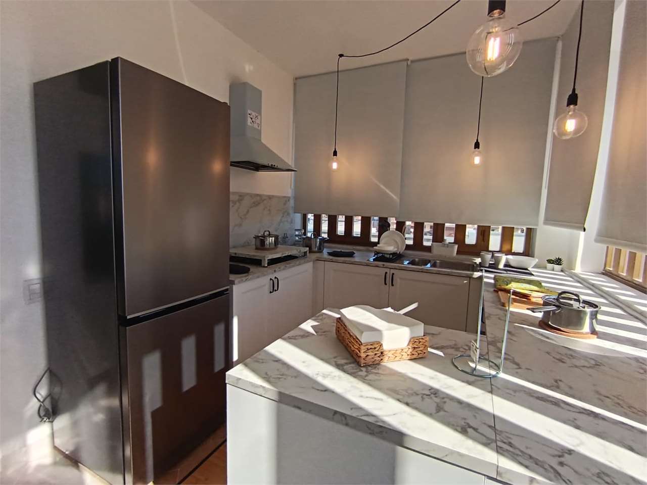 Il bivani misura 55 mqc e ha ingresso sul comodo disimpegno (con televisore e al quale si aggiungerà il divano), cucina abitabile (dotata di frigorifero, forno e lavatrice incassata) con accesso al balcone, grande vano open space con camera matrim...