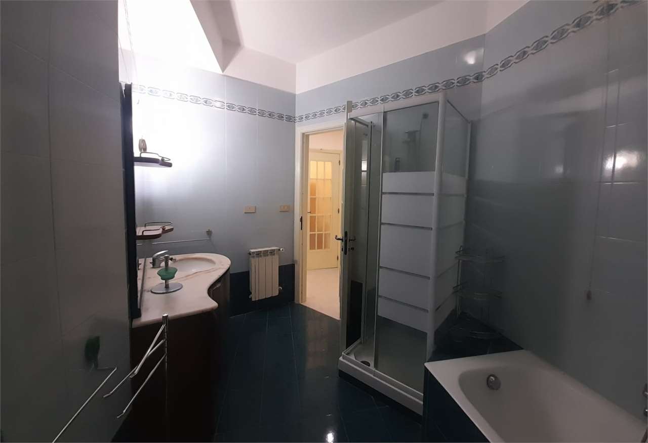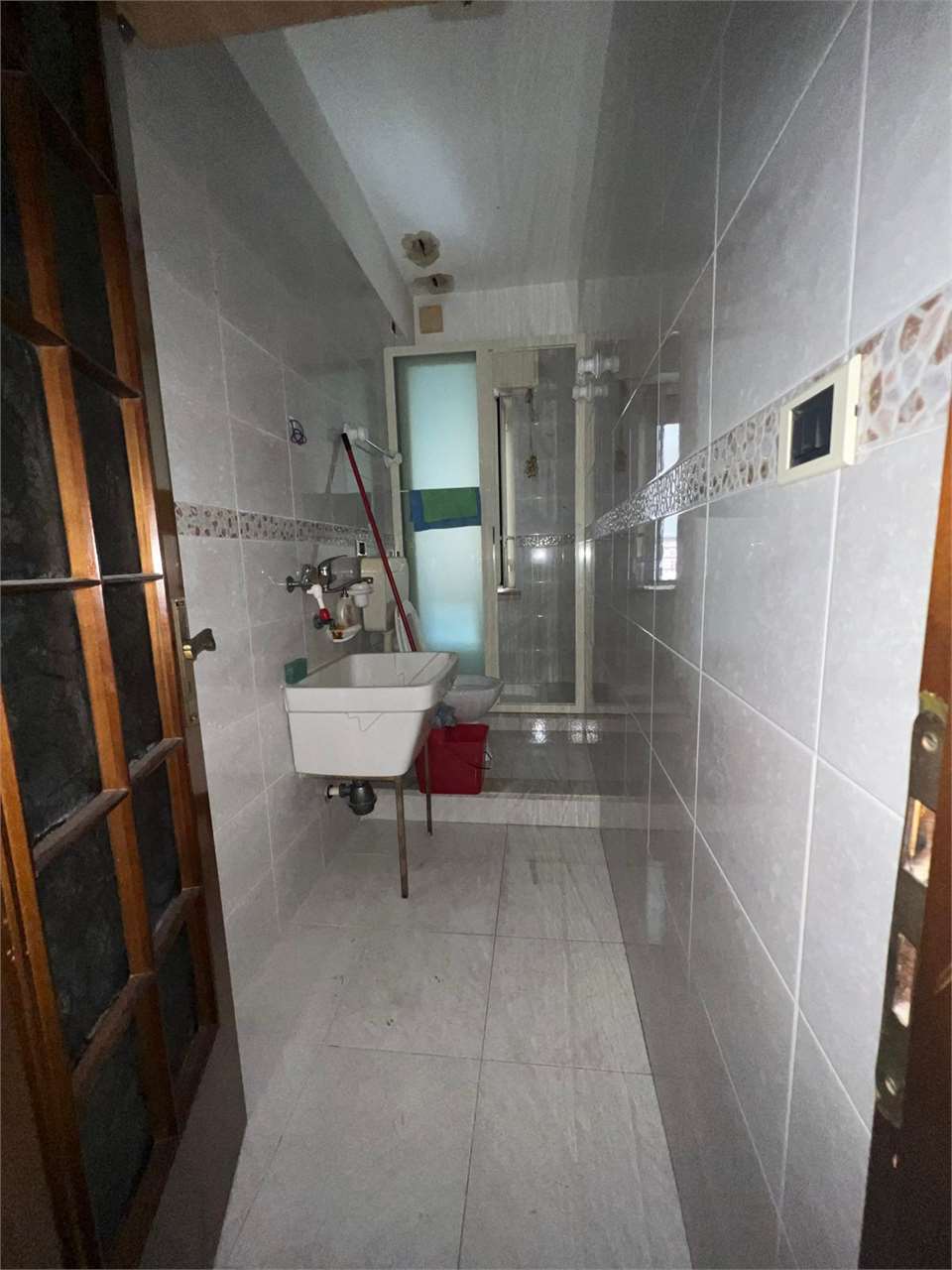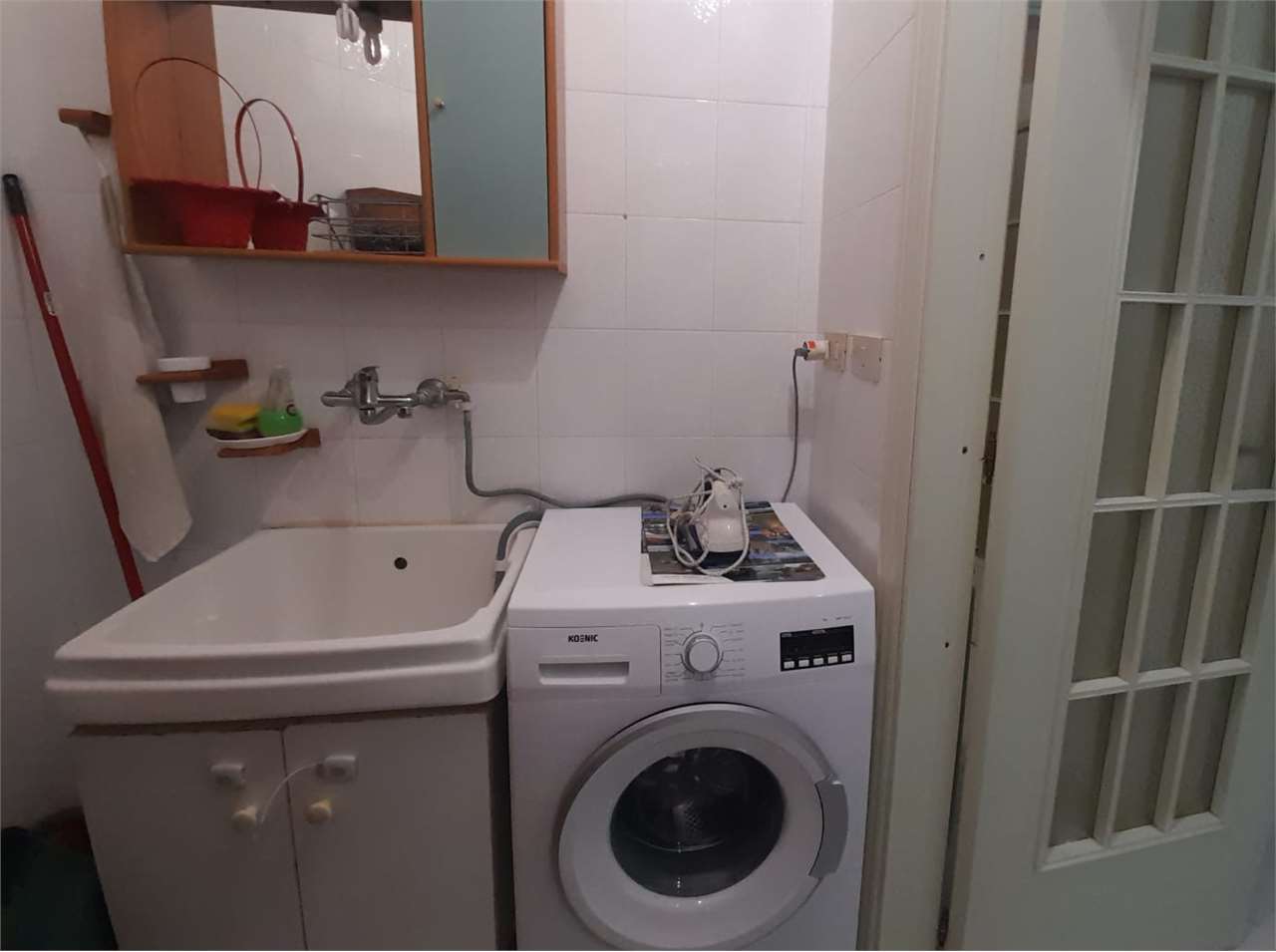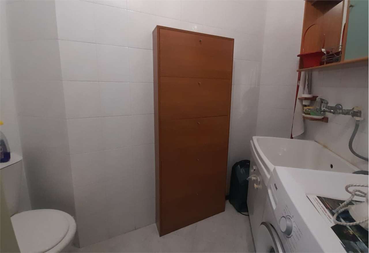 L'appartamento ha una grande zona giorno (che funge da ingresso) composta da un salotto e da un soggiorno con annessa cucina (con finestra), disimpegno, comodo bagno con vasca e doccia e accesso alla veranda, lavanderia con pilozza e wc e lavatric...