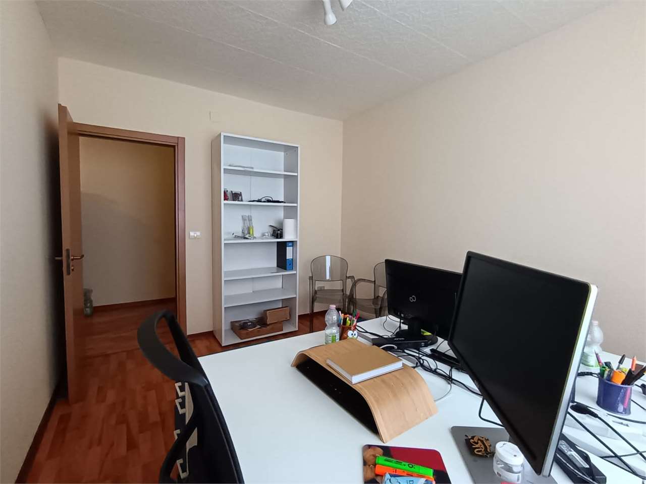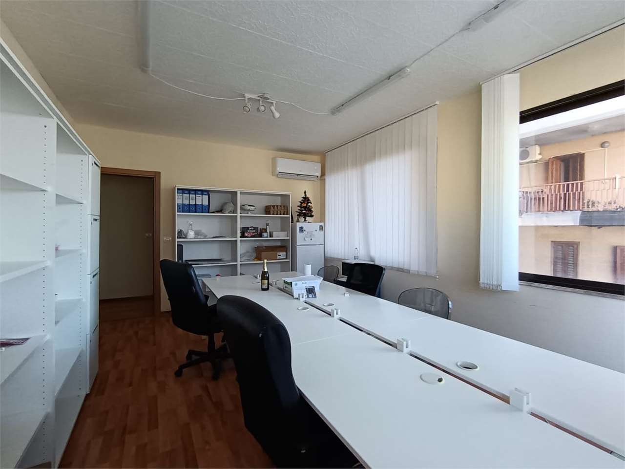 L'immobile si compone di una grande sala riunioni con tre finestre, l'ufficio principale con grande finestra sulla via principale, due stanze uso ufficio con finestra, camera ufficio singola con due finestrelle, corridoio, comodo bagno con finestr...
