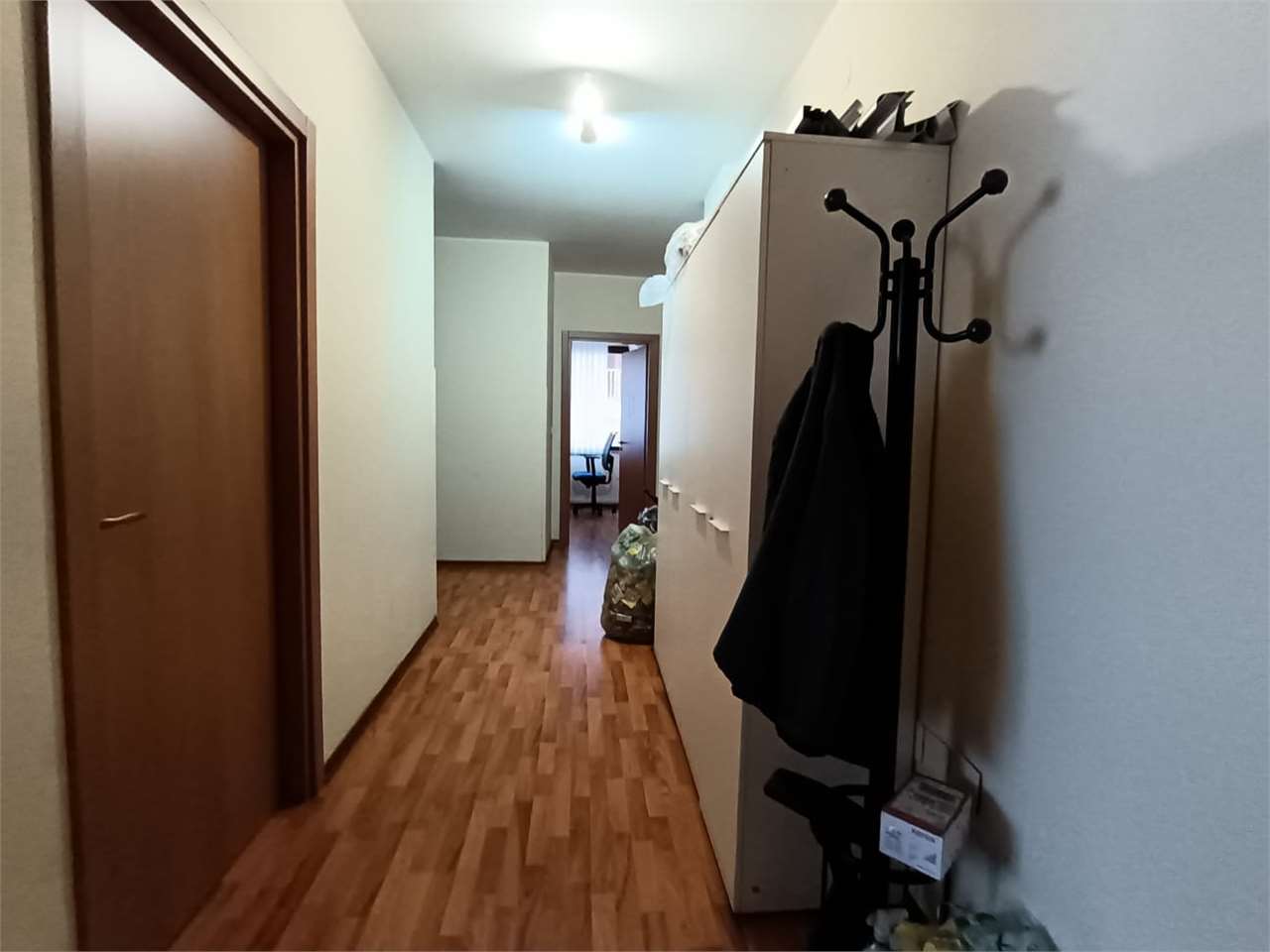 La casa ha un comodo ingresso, primo ripostiglio, salone doppio (con due porte finestra verso il grande balcone), lungo corridoio, cucina abitabile con accesso alla veranda chiusa con ripostiglio esterno (secondo ripostiglio), camera matrimoniale ...