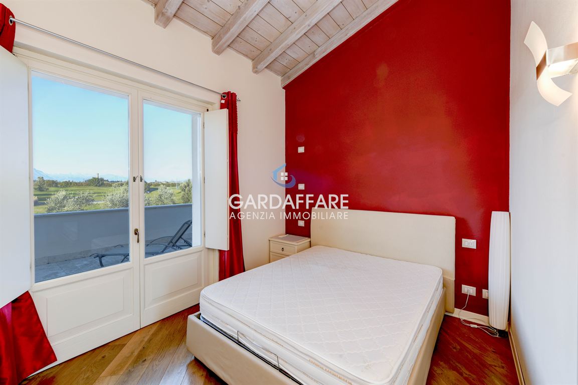 Nel prestigioso contesto del Garda Hotel San Vigilio Golf di Pozzolengo, immerso nel verde e nella quiete di una delle cornici più affascinanti del basso Lago di Garda, proponiamo raffinato appartamento situato al primo piano, valorizzato da una s...