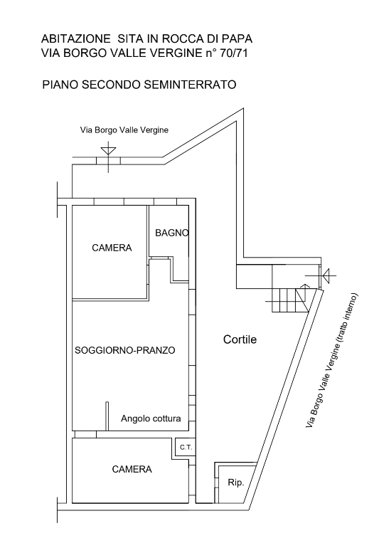 NUOVA PROPOSTA IMMOBILE DISPONIBILE Trattasi di un appartamento in via Borgo Valle Vergine, nel comune di Rocca di Papa RM. Abitazione piano secondo seminterrato, composta da soggiorno-pranzo con angolo cottura, due camere, bagno e cortile di pe...