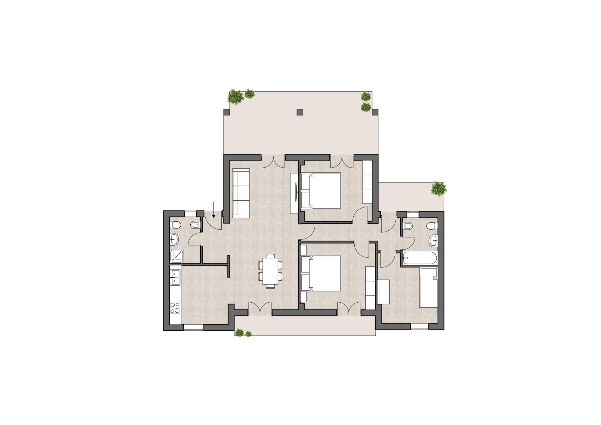 Villapiana Lido (CS) The Home n' Office agency offers for sale an apartment located on the second floor, featuring a double entrance, a bright living room – dining area with access to a large terrace, an eat-in kitchen, three bedrooms and two bat...
