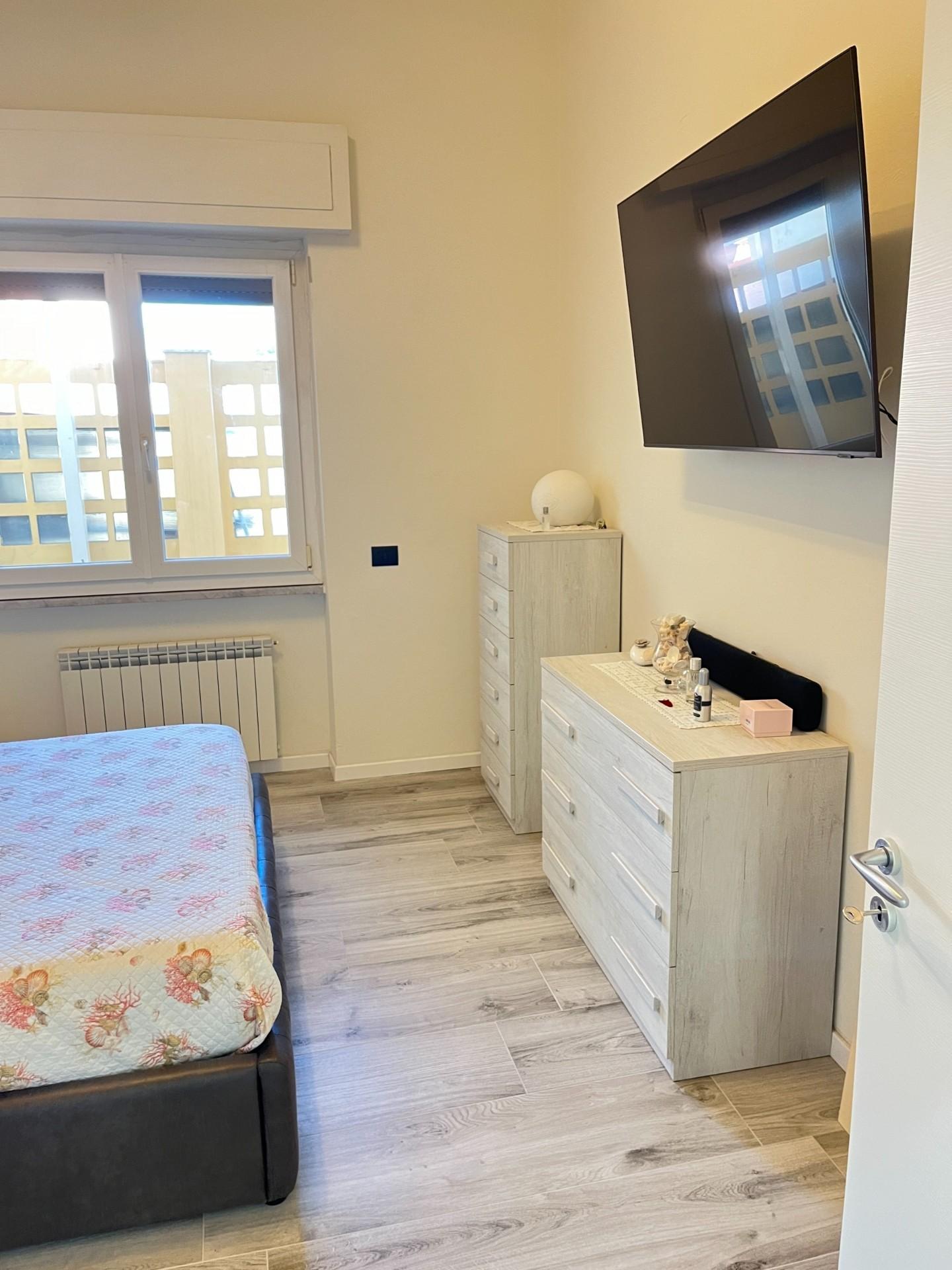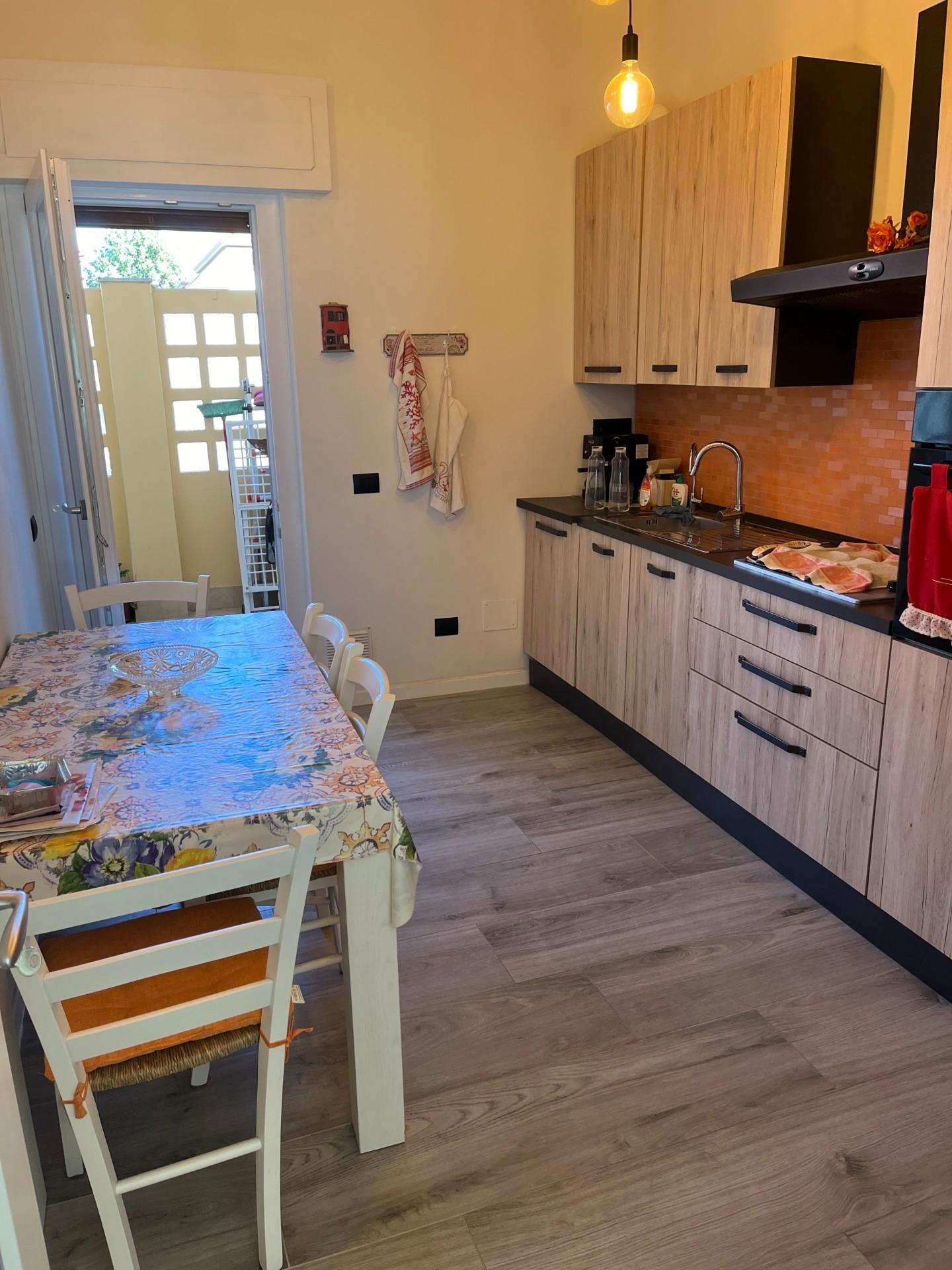 Appartamento a Marina di Carrara, al primo piano, completamente ristrutturato, composto da: Soggiorno con balcone, Cucina abitabile con terrazza pranzabile, Due camere matrimoniali e bagno con doccia.