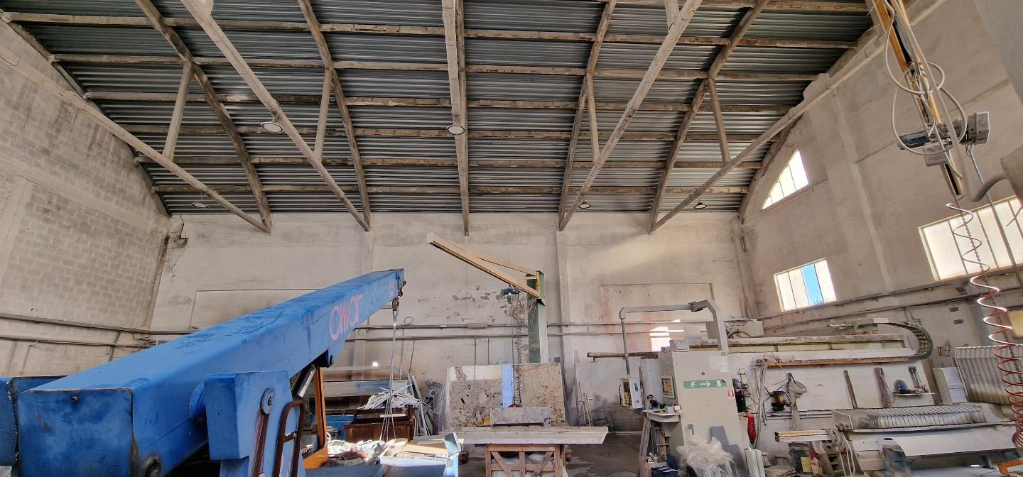 Capannone di 375mq e 150mq di uffici. Altezza interna di 8mt. Piazzale esterno di 3000mq. Zona adatta al passaggio di veicoli pesanti. Possibilità di mantenere l'attuale dotazione di macchinari.