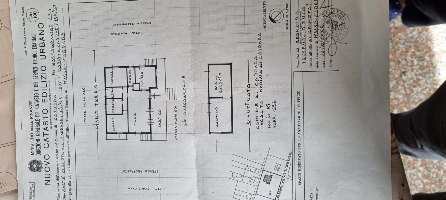 Semindipendente su due livelli, nella località di Comano (MS), con giardino privato, composta da: PT Cucina abitabile, sala con camino, ripostiglio con locale caldaia. P1 Tre camere matrimoniali, bagno e balcone.