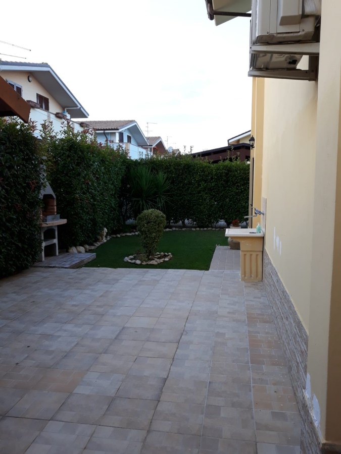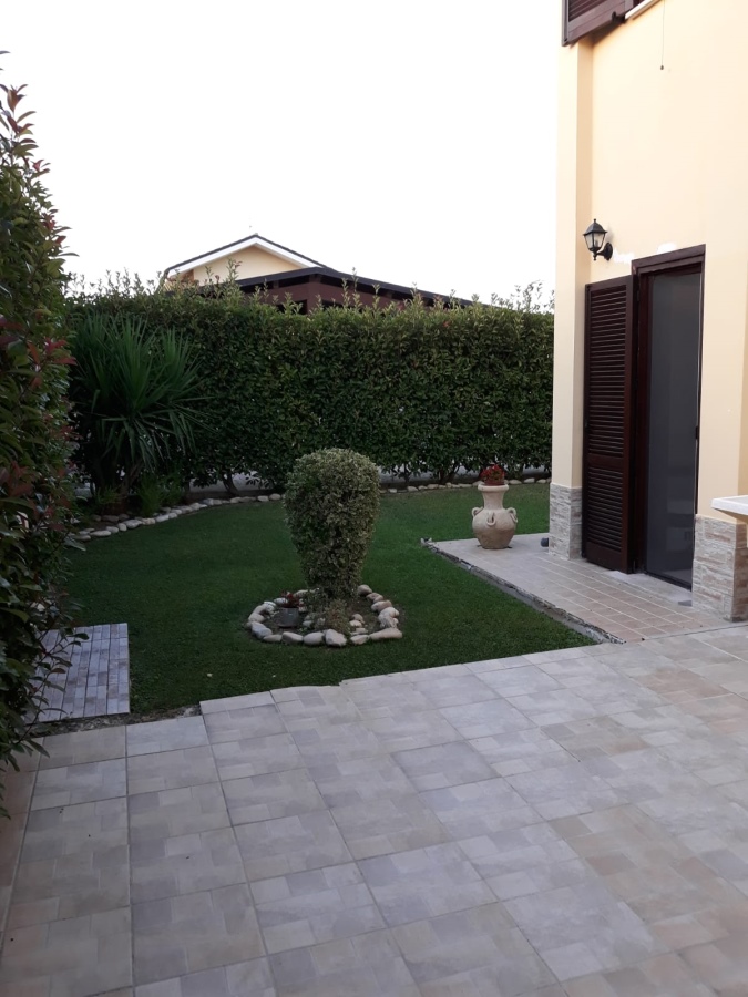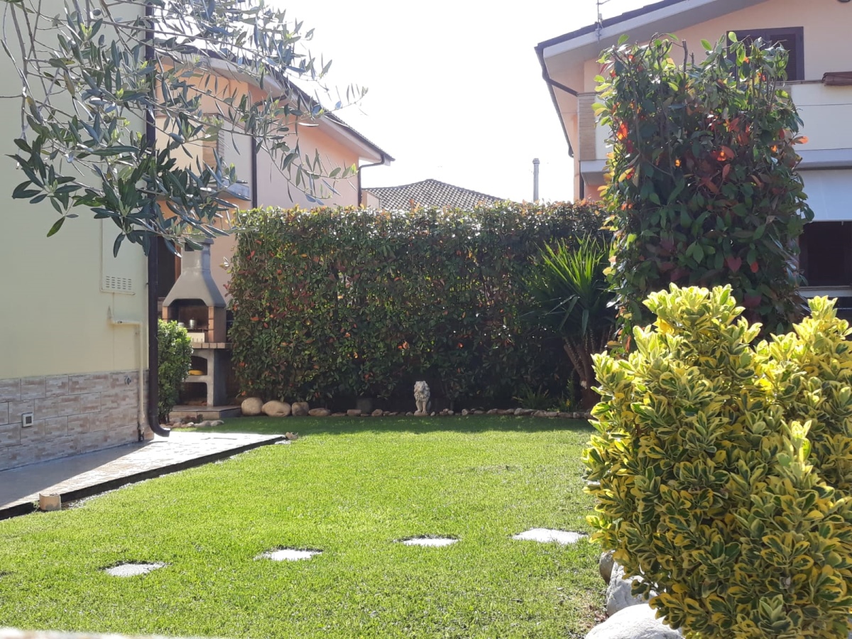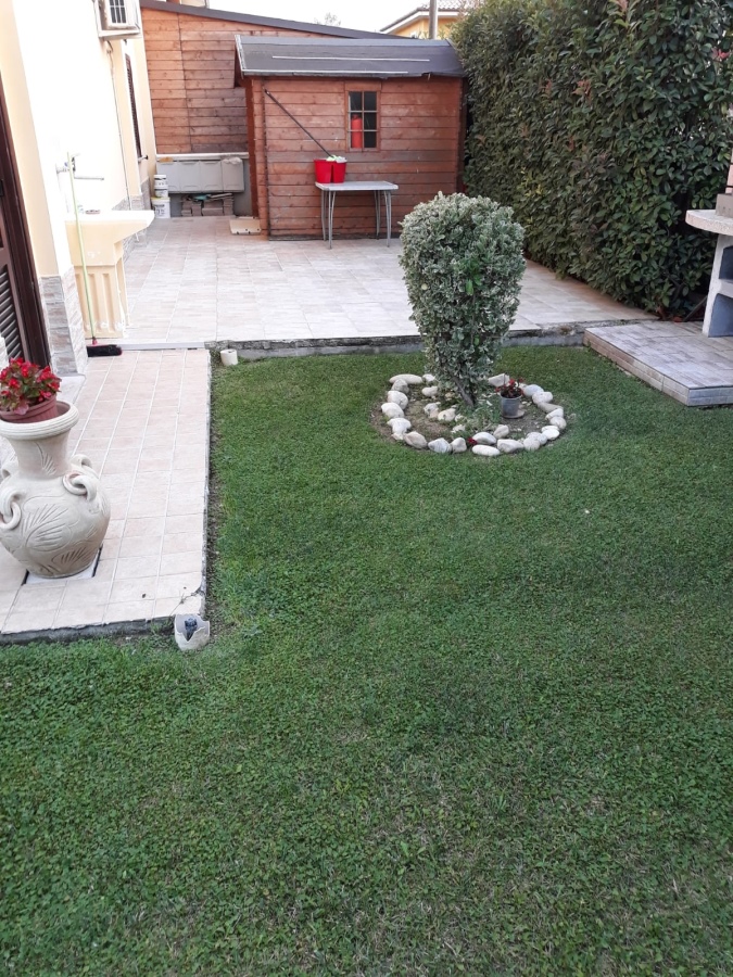 Porzione di villetta bifamiliare con ampio giardino completamente recintato e accessi carrabile e pedonale di esclusivo servizio.\n\nL'immobile si sviluppa su due livelli, il piano terra costituito da Soggiorno pranzo con cucina, un bagno e scala ...