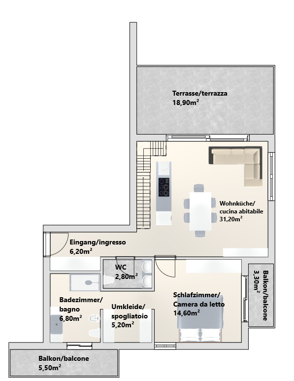 Rif. N033.5 A Mezzolombardo, in una zona residenziale tranquilla, proponiamo questo bilocale di nuova costruzione al primo piano, composto da cucina-soggiorno, stanza da letto con cabina armadio, bagno e ampio balcone. L’edificio, composto da un ...