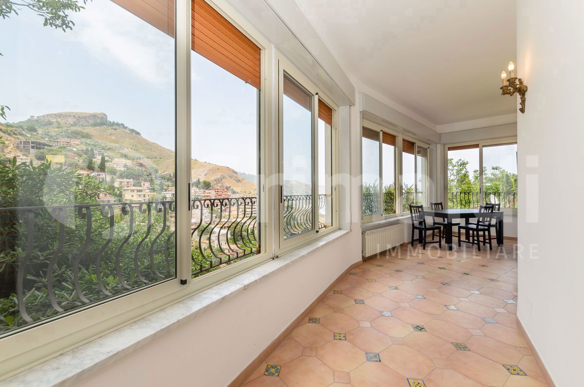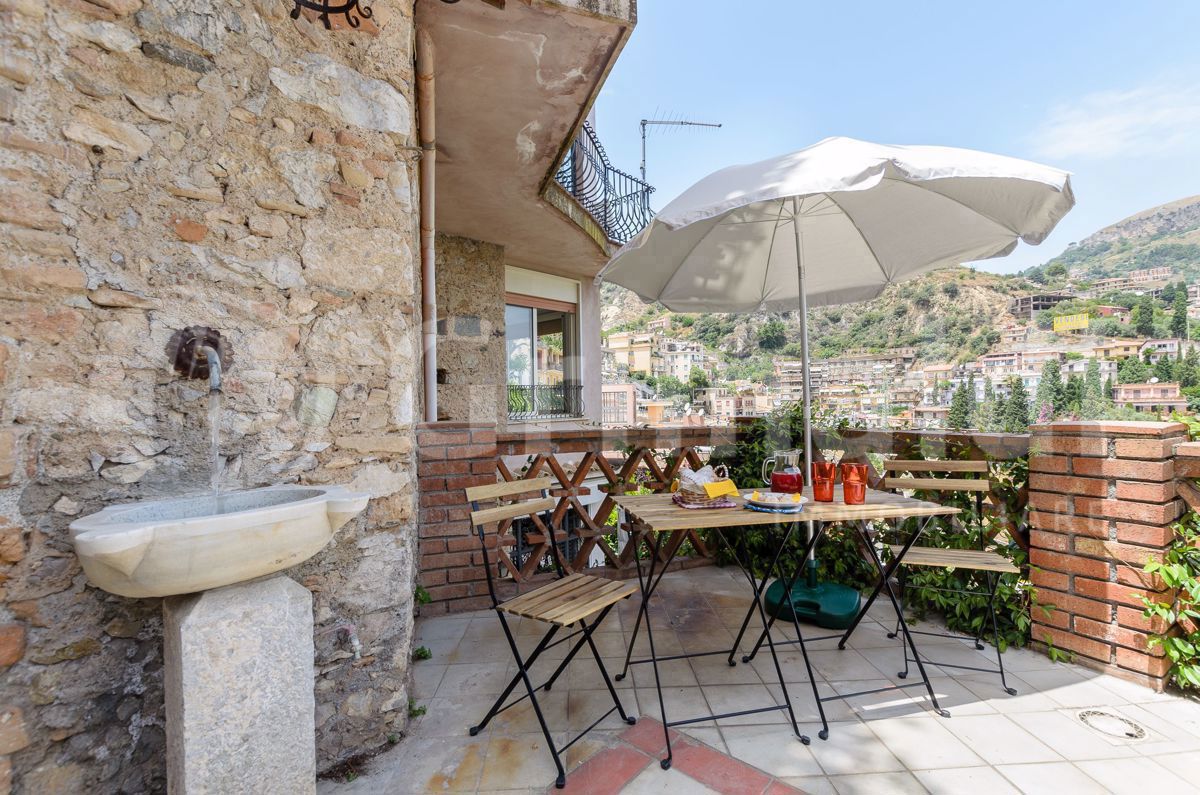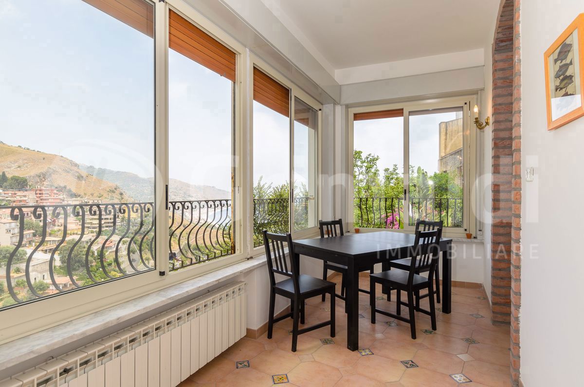 Taormina Centro - Via Fontana Vecchia - all'interno di un fabbricato d'epoca prestigioso, panoramica soluzione con veranda a livello, composta da ingresso in ampio soggiorno, zona cottura attrezzata, camera da letto, veranda coperta, due bagni, ri...