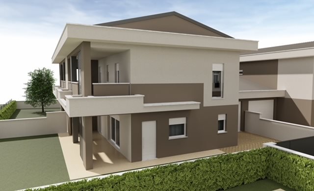 Esclusivo complesso residenziale di nuova costruzione costituito da coppie di ville bifamiliari completamente indipendenti.\nL'abitazione si sviluppa su due livelli, di 134 mq circa commerciali complessivi ed è cosi composta :\nal piano terra sogg...