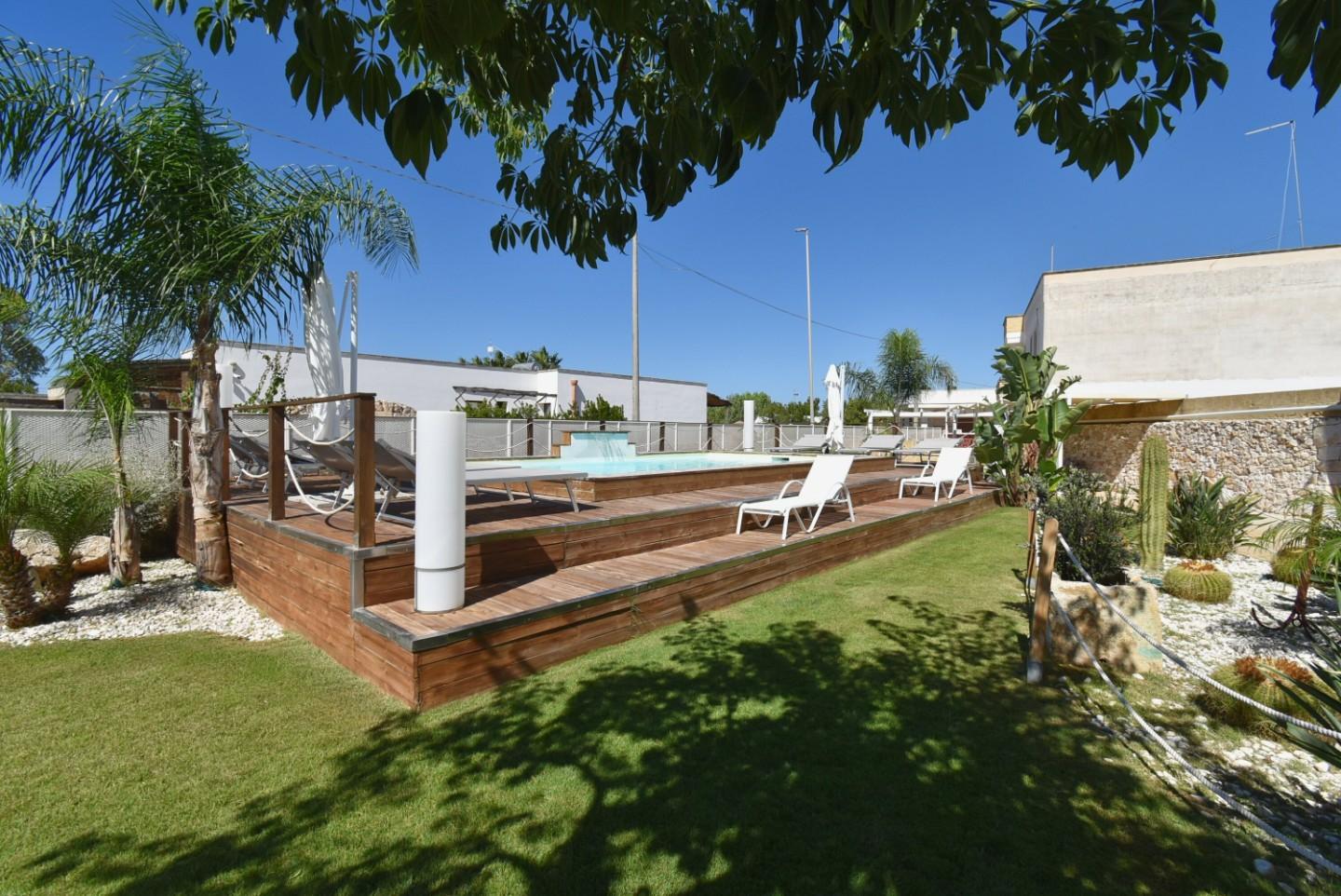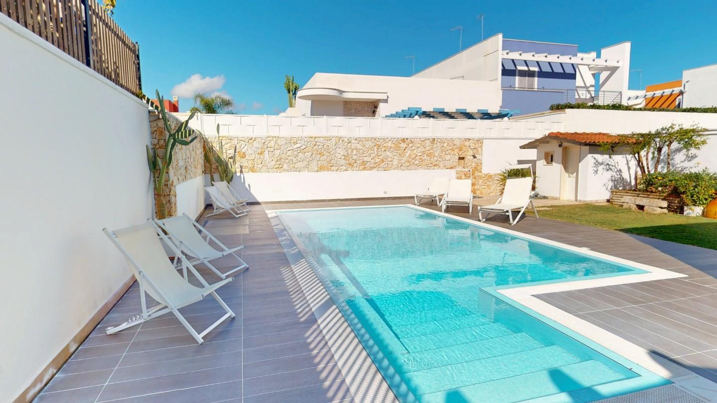 VILLA CON PISCINA A BONCORE, TORRE LAPILLO Nel cuore del Salento, a Boncore, a soli 1 km dalle spiagge bianche di Torre Lapillo, sorge questa elegante villa indipendente con piscina privata. Un rifugio di comfort e tranquillità, ideale come casa ...