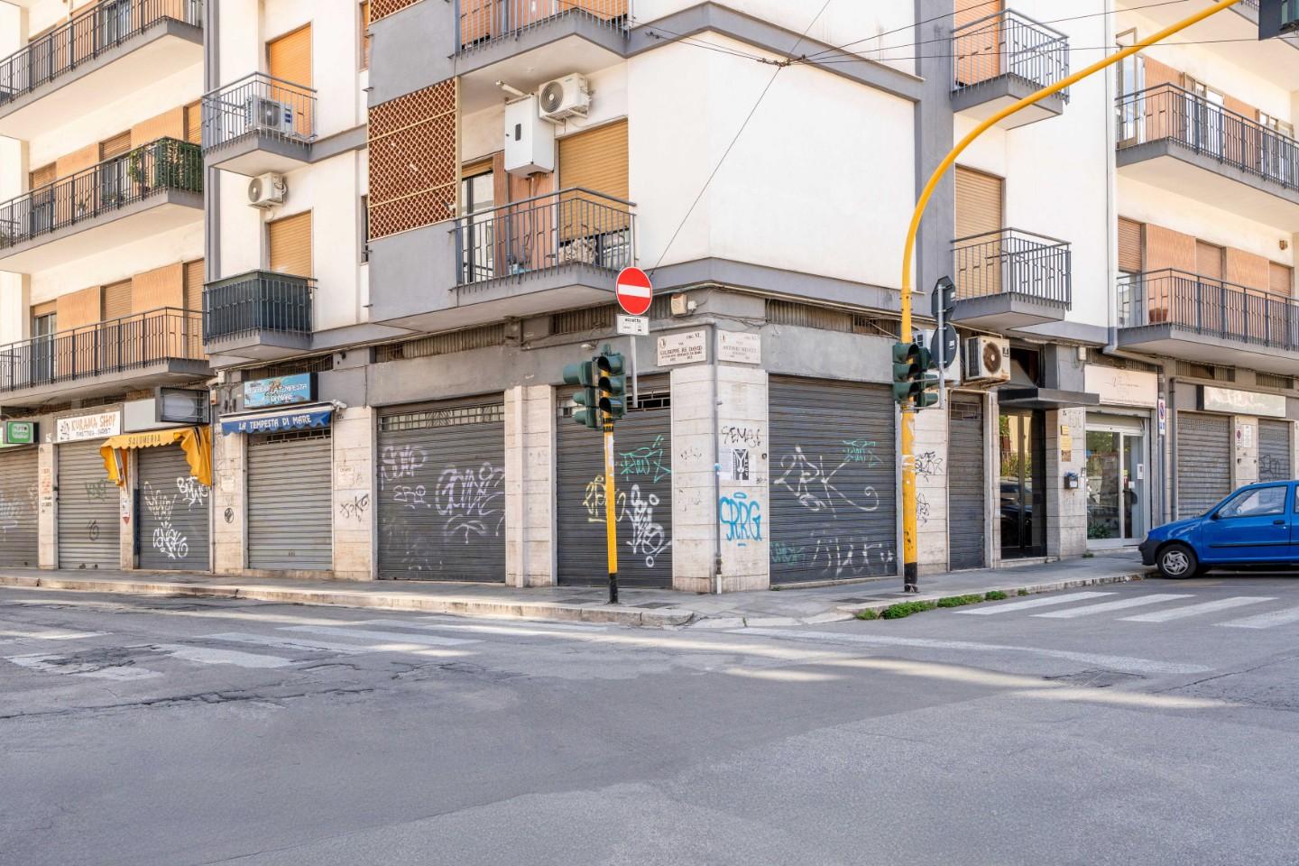 Rif. Ag. 43 Info al 335.497282 080.5616633 Proponiamo in vendita luminoso locale commerciale con quattro vetrine, sito in Bari alla Via Re David n. 177/10 con angolo Viale Meucci n. 2, in zona densamente urbanizzata, dotata di tutti i se...